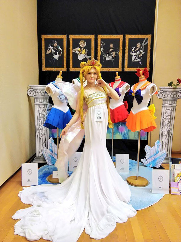 出展者の皆様、スタッフの方々、身に来てくださった皆様お疲れ様でした そしてありがとうございました 大変な情勢の中でしたが感染症対策にも取り組み、素晴らしい展覧会だったなと思います そんなこんなでレガシーレポ れつごー! 三日間開催の前日に設営で恐る恐るやってくるビギナー たった一人自分の壁の前に呆然と立ち尽くし、暫し硬直 何をどうしたら良いのだらう パネルの設置の仕方すら分からねえ ていうか一人でこんな大きいパネルどう設置すれば…… とりあえず荷を解いてお手伝いに来てくださるさいこさんを待つことに さいこさんの素晴らしいセンスで壁にセレニティのリボンを飾ったりして 何とか設営完了しました パネルと合わせて衣装の展示 これが一度やってみたかった 今回パネルも初めて作ったのですが サイズをどうしようかめちゃくちゃ悩んだビギナー A1かA0で悩んで大きい方を頼み うちに届いた時にはあまりの大きさに後悔したビギナー でも会場に飾ったらぴったりだったのでこれで良かった結果オーライ パネルは今後、東京駅のKITTEでも展示されるようです しかしまあトルソーを二体借りて三日間も展示場所を提供頂き これで出展料数万とか安すぎる……ありがたい限りです ムーンとセレニティを飾りたかったのですが 壁の前に二体は少し手狭ということで 後ろに場所を頂きドレスはこちらに展示 柔軟に対応頂いてしまいました 裾が広げられてありがたい限りです二回目 過去の己を見つめ直すアングル 立ち位置もバッチリすぎる ありがたい三回目 実は今回目玉だったのがこのタイル印刷 小さくて中々目立たせられなかったのが勿体無いくらいの一品 釉薬で色を吹き付け焼いてあるので未来永劫色が褪せないんですよマジか まだ日本ではプリンターが数台しかないらしく、珍しい技術のようです (西洋ではメジャーらしい) 多治見の企業様に作っていただいたのですが、こういう面白いものは 今後是非活用されて欲しいなあとしみじみ 弱点もありまして、色の幅がすごく狭いので ビビットなカラーはほとんど再現できないかなと思います 色素の薄い原作セレニティが今回めちゃくちゃピッタリはまった感じです まあまあお値段は張るので本当に作ろうか一瞬悩んだのですが 家族が「墓石に埋め込んであげる」と肩を押してくれて 今回制作に至りましたそんな裏話 何故か私の死後の話が着々と進んでいく…… 今回とても興味深いご相談をいただきました 死装束のセレニティドレスをいつか作って欲しい しかもそんなお話が何と二件もΣ 私も日々、自分の最期のドレスをいつから作ろうか考えてはいるのですが じわじわ、じわじわと世間でも興味が広がってきたような気配を感じました セレニティでウェディングの次は人生最後のドレス製作 私の人生の目標がまた一つ増えた 今回三日間の開催の間 さいこわかちこさんにお手伝い&ゲストコスプレイヤーをお願いしました 色々持って行って着て貰ったよ!わーいわーい! 一日目はウラネプ (感染症対策で透明マスクを着用しています) 最近はムーンのイメージが強かったからか、結構驚かれました 二日目はダークサイドの二人 さいこさんのお衣装はアリスガワアリスさんのお手製です 二人共本領発揮のド迫力でした 今回に合わせてブラックレディの衣装も作り直し こちらで三代目 ブラックレディは人生初の自作衣装だったのもあり そこから自分の技術が上がってきた頃合いを見て作り直すようにしてきたので 実は結構思い入れのあるキャラだったりします しかしまあ、どうしてこんなに馴染むのかと思うほどの悪女顔 三年ぶりくらいにブラックレディちゃんやったけど やはり自分の中で一番しっくりくるし顔作らなくても充分迫力あるし なんでこんなに似合うのかな不思議だなとしみじみ サターンは年取って輪郭が変わったから半ば引退になってるけど ブラックレディちゃんは若かりし自分と何も変わらず むしろじわじわ良くなっていきそうな余白を今ここから感じている 謎過ぎる プリンセスなセレニティの可憐さは何百回やってもぎこちないのに なんだこの三年ぶりにぱっと出した黒女ちゃんの異様なフィット感は セレニティちゃんあんなに努力してるのに報われねえ ちくしょうめ 三日目はスーパーセーラームーンと時満ちて光臨火球様 さいこさんが優雅なのですごく高貴な姫様で眼福でした (でも何故か敵キャラですかと聞かれたらしい) 入口でお出迎えのあまびえちゃん ちゃんと被れるんですよすっげえ! 初めての展覧会出展となり、かなりびくびくしながら出陣しましたが たくさんの刺激を貰う事が出来ました 普段セラムンの世界しか知らないので、見るもの全てが目新しい斬新な世界だった 色んなジャンルのすんごい作品を一気に拝見して情報量に脳が追い付かないくらい 充実した三日間でした 一言で言うと同じベクトル向いたキチガイばかりが集結していて 私だけじゃないと言う妙な安心感を貰いました たくさ