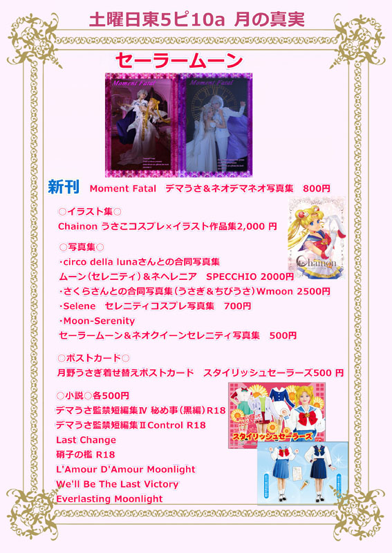 とうとう3月を持って閉鎖してしまったので 所在地は今やこのブログだけの状態となりました そのうち改めてサイトを作る予定ですが、臨時で一覧表を置いておきます。 princessusako@yahoo.co.jp(お問合せ) twitter(コスアカ) twitter(作品展示アカ) コスプレキャラ別写真館 コスプレイヤーズアーカイブ 発行した本をBoothにて通販しております Booth[月の真実] 一部作品とらのあなもご利用いただけます とらのあな[月の真実]
