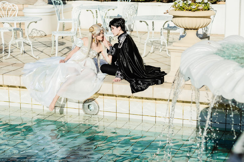 撮影したのは実に二年前になってしまうのですが エンセレをがっつり撮ってきたのでようやっとレポ コスレポは順不同で載せているので(まとめやすいものから整理している感じ) たまに一体どれだけ前の写真だよ、という事態になってしまう時もありますが 長い目で見ていただければと思います 死ぬまでにはきっと載せる(こら セレニティの悲恋 そこからほんの一時の幸せな時間を切り取って撮影しました プリンス・エンディミオン MOMOさん プリンセス・セレニティ うさこ 撮影 西ゆうさん 絵画だ……これは絵画だ 西ゆうさんの構図力が半端ない&現像で水の色を綺麗な青にしていただき まるで絵画のような仕上がりになってます。ていうか絵画です しかもこれ、初めましての撮影の記念すべき一発目だったりします カップリング撮影は距離感が難しかったりもするのですが 自画自賛含みこの三人、経験値がすごかった… 舞台だ!演劇だ! 最初から最後までひたすら幸せな時間しかありません 実はこれは今回の撮影のコンセプトだったりします とにかく誰も入り込むスキのないくらい、この世で二人きりになったような ロマンチックな空間を切り取ってみたいと事前にMOMOさんにお伝えしてありまして というのも、こんな幸せな時間は本当に一瞬でありこの時間があるからこそ 後ほど来る悲劇の結末がより一層重くなるという 未来を示唆した解釈を織り込んであるのですね 表の美しさだけを見せつけ、その裏を隠して解釈を各人に投げて終わる 闇属性のうさこ氏が考えそうなことである こいつめ ほんの一時の煌きだからこそ尊くて美しい そんな二人の貴重な時間をしばしご堪能ください スカートとマントを同時に投げつつシャッターが切れるまでの間にポーズを固定する これがバチッと決まると楽しすぎる! 9巻表紙をマジックアワーの時間を待って撮りました MOMOさんとエンセレ合わせをしましょうという話になった時 普通なら通常の甲冑verでくると思うのですが MOMOさんから提案されたのは何と完全版9巻の表紙衣装のエンディミオン そのセンスに痺れました…普段創作をメインでされている方の斬新な発想だなあと! しかもこのエンディミオン衣装は後ろ姿のみで前のデザインは分からないので ご自身でデザイン画を描かれてから衣装を作られたという徹底ぶり しかも全身真っ黒なデザインなのでマントの表裏や衣装本体の素材を変え 色が溶けないように徹底的に計算されて作られてます そんな使い分けられた黒の世界にシルバーの刺繍ブレードが映えること! これは、これはセレニティだってどこか合わせたい!!と思い立ち 胸部分の丸い輪っかをエンディミオン様の銀ブレードと同じデザインで 頑張って手縫いで刺繍しました。 正直拡大しないと見えないくらいの仕上がりですがが 本人的には着て満足 万歳自己満足! そんなセレニティドレスはこちら 月夜のランデブー ランデブーって古いな うる星やつら世代か ひたすらに尊い ララランド(こら こういうスカートのひらみは私の十八番 ふたりのタイミングがバッチリ合って背景の噴水まで完璧です ホントこの三人すごい、最強 熱い語りが入りましたがこれにてレポ終了です 長くなるからなかなか書けなかったと分かりましたか分かりましたね ただ今でございます 幸せな週末から戻って参りました そうして風邪を引きました いきなり気温が下がって風邪を引いているお友達もちらほら見かけますが 皆さんあったかくして下さいね 引き続き先週末の撮影会のレポをアップ致します 拍手レス付きです(´▽`) ※絡み写真がより一層 増量キャンペーン中ですので 観覧にはご注意ください