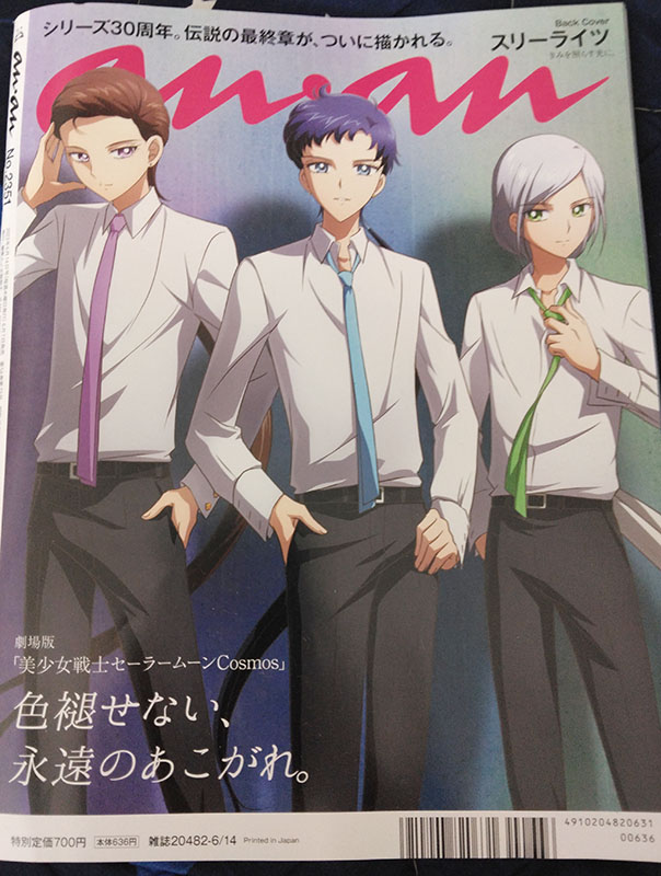 劇場版セーラームーンCosmos(前編) 先週金曜の初日からバタバタしていましたが、ようやっと落ち着いたので前半のレポです 折り込んでからは盛大なネタバレオンパレード祭りなので観覧にはご注意ください とうとう原作ストーリーもラスト 20周年が始まってからもう10年経つんですねしみじみ そんなお祭りの始まりはこのトークからいきましょう ananの裏表紙でスリーライツが抜擢 これはすごい、マジかと絶叫しました スリーライツが現実世界の雑誌でアイドル活動?え、ここは三次元?二次元? めちゃくちゃグッジョブで拍手喝采です 一般向けのファッション雑誌ならエタムンとかの方が分かりやすいだろうに ここでスリーライツを出してくるとか何だそれすごい 発売日に遠出して大きい書店に行ったら、数か月前のバッグナンバーからズラリとananが 並んでいる棚があるんですよ そこの一番端に、セクゾン(表表紙)の隣にライツが並んでいるんです ギョエー! 感動して茫然と立ち尽くしました 雑誌をウキウキしながら買えて幸せ ライツの追っかけになった気分がリアル体感できて貴重な機会でした ありがたや そういえば中に一部誤植があって訂正の記事が出ていましたが めためた面白い間違いなのでアリ!むしろありがとう!(コラ そして劇場版前半戦 今回は先行試写会に行けたので一足先に観てきました 先に観ておいて良かった 現場の私が冒頭から混乱してしまった… おかげで初日ゆっくりと泣くことができました 会場には等身大パネルと 先行試写で舞台挨拶に来た井上さんのサインがありました 初日朝一で物販も何とか購入 ライツのうちわアクスタがやはり一番人気 一人2限で瞬時に無くなりました ポップコーンバケツのルナも買ったよ! ユニバのものと並べて大きさの比較(いやルナPは厳密にはポップコーンバケツではないけど そこから会場を移動して別の映画館でドリンクボトルもゲット ポップコーンバケツと同じ場所で売ってくれないのは何故なのか 今回置いてある対象店舗がバラバラで大変でした あとナムコで映画の半券を見せるとステッカーがもらえるのでこちらもゲット やることが多いよさすが初日! さあここからはネタバレオンパレードで感想タイムです 折り込みますので必ず前編を見てから開いてください
