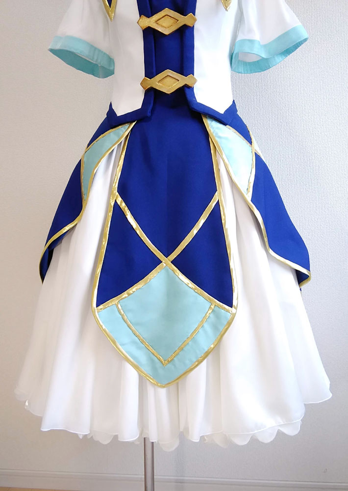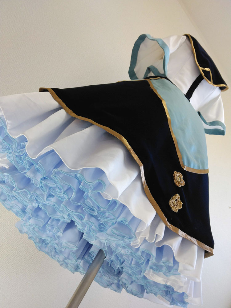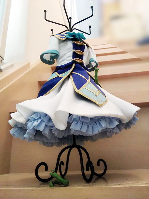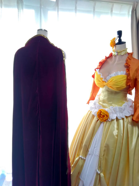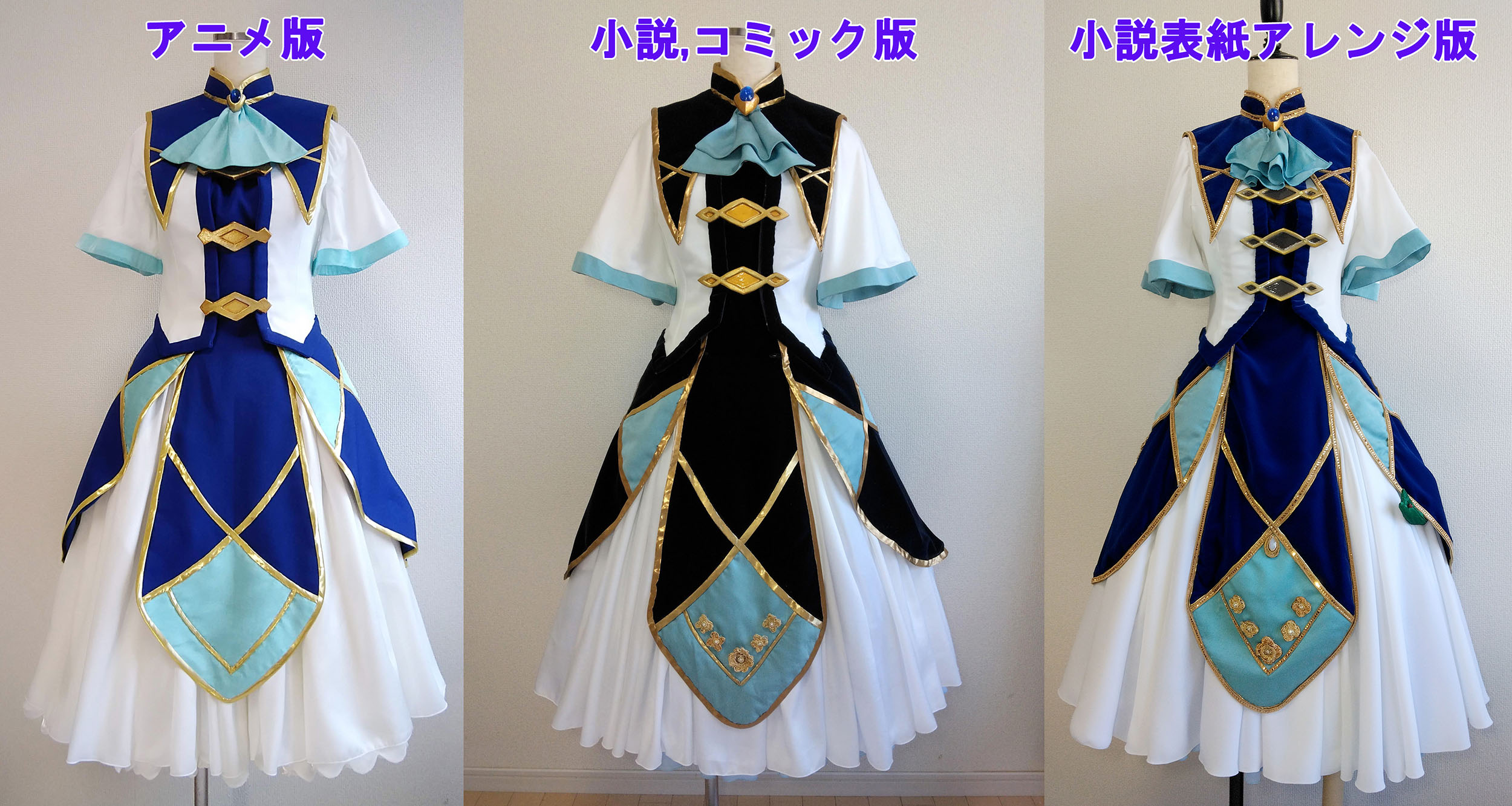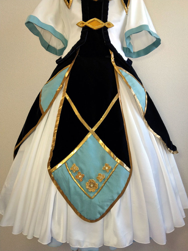 6月でドレスを二着 しかも両方共になかなかに手の込んだデザイン この衣装は本気で間に合うかわからなかったけど半ば意地で仕上げました 主に4巻のデザイン、丁度発売されたフィギュアのカタリナを参考に製作しました 製作期間はわずか10日……本当はもう少しゆっくりと できたら1ヶ月はかけて大事に作りたかったんです だけどジオルドさん(原作版)との併せが6月末にできることになった瞬間 「何とかつくる!」と毎度軽い私の口が勝手に宣言してました 好機はいつ来るかわからない タイミングは逃してはいけない アニメ版と差分をはっきりさせたかったので色味をぐっと抑えました 水色の生地も実は渋くなっているんですよ並べないとわかりませんが 本体生地はベルベット一択、 イラストの色の塗り方で、光沢の質感がとても上質な感じなんですよね (この決断が後々私をすごい勢いで追い詰めていく 実はスカート水色の三角模様を少し下に引いてしまって… バランスみたらもうちょっと上が良かったなあと後悔しています 直すか、いつか作り直す気かお主……(多分 製作記録でじっくり語りますが、縁どりほぼ手縫いです アニメ版は表だけはミシン使えたので、手縫いは片方で済んだのですが 毛足の長いベルベットを上手に縫うのが私下手すぎてorz 大事な部分なので二回言いますが、この決断が 私を発狂寸前まで追い詰めていくことになるんだってば(じりじりじり アニメ版の方の型紙をある程度使えたので 全く無からの制作ではなかったのがせめての救い でも要所は型紙作り直しているんですよ差分が大事なので どこかわかるかな(間違い探し 前スカートの水色部分が少し伸びました (差分過ぎて気付けるはずがない あと上着もラインが違うんですよほんの少しですが 原作の色が暗めで見づらいですが、正面縁ラインの角度が変わっているのわかりますかね アニメより原作の方が角度きつめのイメージです ひらひらの袖も型紙を改良しました アニメ版は腕が上がらなくて苦労しましたが今回はバッチリ! ひらみも増量してあります 毎度の布量で何とかしたくなるペチコート! アニメ版はスカラップ地獄に苦悩しましたが 今回は単純に布量で悲鳴を上げました 毎度足りなくなった生地を買い足し、最終的に28mくらいになったかな 柔らかいシフォンでひたすらギャザー寄せて巻ロック 締め切りが迫る中、ハラハラしながら永遠に終わらない作業を進めていく緊迫感よ そして毎度おわかりでしょうが、これ全部白スカートで隠れます、きっちりと 馬鹿かなと思いつつも、やはりワイヤーバニエだと座った時のシルエットが綺麗に出ないのがイヤで (でも下から覗いた時の再現率はワイヤーパニエの方が近いと思ってる) ソファに座った時にごく自然に出る布のシワ感が欲しい 何なら絵を描くときの参考にしていただけるようなスカートにしたい 私の隠れた野望 小物もイヤリング以外全部作り替えです バレッタも胸留めも形が違う、いやそれ以前に色味が違う リボン並べてみると水色の差分がよく見えます 今回ジオルドさんの衣装は洋裁ベテランのあしゅかさんにフルオーダーでお願いすることになりました 私には本当に時間がない……男の子の衣装も専門外なので遠慮なく頼る! アニメ版と小説版どちらでお願いしようか悩んだのですが 小説版の方がデザイン手が込んでいて好きなので、そちらで頼みました 裏地にラインが入るのが超好きなんですよね そうなればカタリナだってアニメ版ではいられない 原作版!何とか作れ!意地でも仕上げろ!(そして怒涛の6月が始まった 二人で前日ほぼ徹夜で何とか仕上げました 破滅フラグ、回避! (この旗実は、裏面にも仕掛けがあるんですよそのうち種明かします) だがしかし、これでもまだジオルドさんの衣装は全然納得が言ってないようでして 次回までにまた作り直すそうです 私も次はマントを作る!二人の合作!えいえいおー! 折り込んで製作日記につづきます 怒涛の週末を駆け抜けて参りました うっかりと沼にはまってしまったはめふらで、まさかのうさぎバースデーの日に バンダイミュージカルの聖地、サンシャイン劇場に初めて観劇に行く事になるとは 当時一度も行けなかったサンシャイン劇場!その初日がWうさぎバースデー!しかも 何とネルケミュージカルのイチ推しだった高橋果鈴サターンが、ソフィアで登場です 一体どう言う巡り合わせだらう…これはセラ活なのかふら活なのか、分からなくなってきたぞ そんな奇跡に打ち震えつつ、4公演観て参りました! ジオルドルート、ニコルルート、ジオルドルート、キースルート! そしてその間に何と、これまた7/1から始まった セーラームーンミュージアムにも降り立つと言うハードスケジュール セラ充にふら充、全力でやり抜きました やりたいことは減らさず、上乗せで増やしていくスタンスのうさこ氏です 毎度スタミナだけは褒められます そんな訳で早速レポです あ、私の感想おかしいですよ最初に言っときます