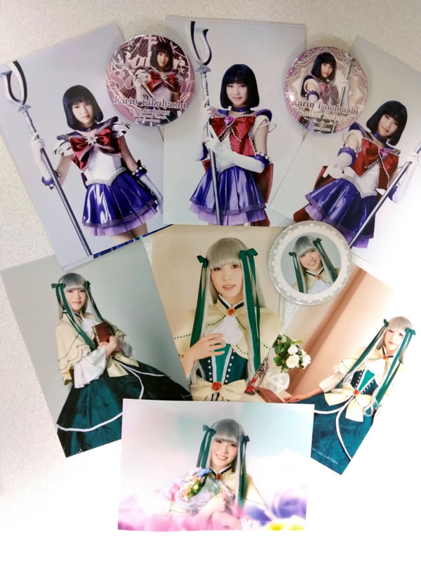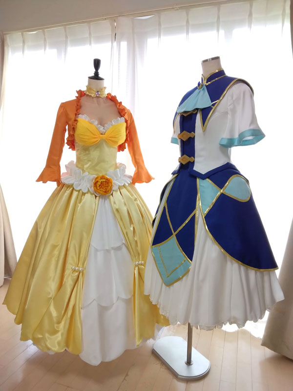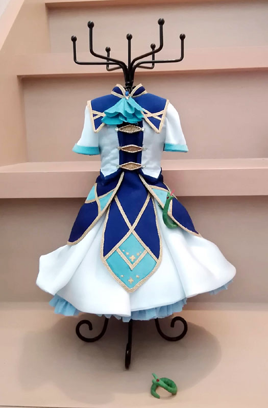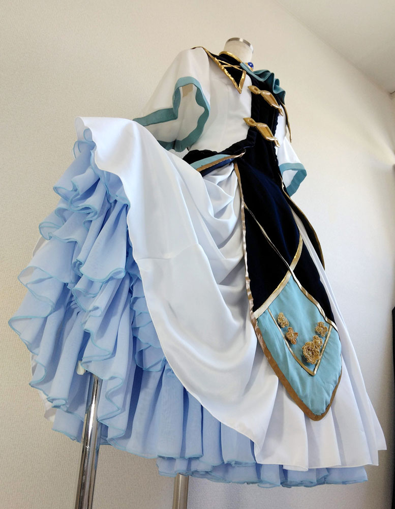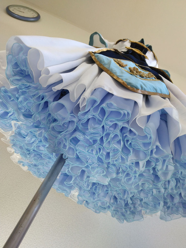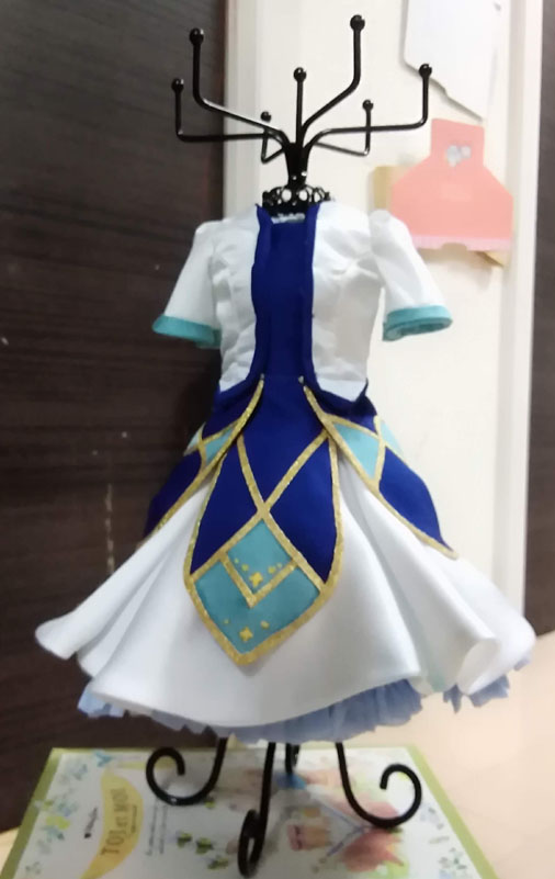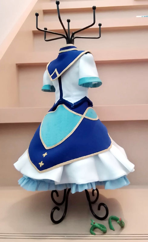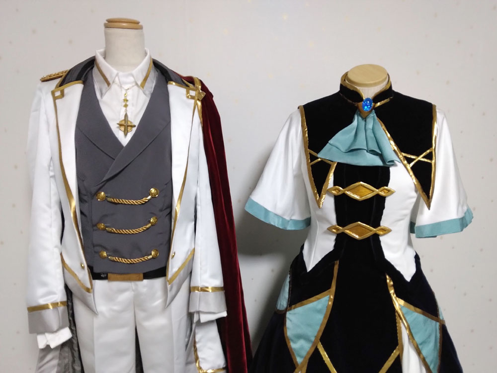 6月でドレスを二着 しかも両方共になかなかに手の込んだデザイン この衣装は本気で間に合うかわからなかったけど半ば意地で仕上げました 主に4巻のデザイン、丁度発売されたフィギュアのカタリナを参考に製作しました 製作期間はわずか10日……本当はもう少しゆっくりと できたら1ヶ月はかけて大事に作りたかったんです だけどジオルドさん(原作版)との併せが6月末にできることになった瞬間 「何とかつくる!」と毎度軽い私の口が勝手に宣言してました 好機はいつ来るかわからない タイミングは逃してはいけない アニメ版と差分をはっきりさせたかったので色味をぐっと抑えました 水色の生地も実は渋くなっているんですよ並べないとわかりませんが 本体生地はベルベット一択、 イラストの色の塗り方で、光沢の質感がとても上質な感じなんですよね (この決断が後々私をすごい勢いで追い詰めていく 実はスカート水色の三角模様を少し下に引いてしまって… バランスみたらもうちょっと上が良かったなあと後悔しています 直すか、いつか作り直す気かお主……(多分 製作記録でじっくり語りますが、縁どりほぼ手縫いです アニメ版は表だけはミシン使えたので、手縫いは片方で済んだのですが 毛足の長いベルベットを上手に縫うのが私下手すぎてorz 大事な部分なので二回言いますが、この決断が 私を発狂寸前まで追い詰めていくことになるんだってば(じりじりじり アニメ版の方の型紙をある程度使えたので 全く無からの制作ではなかったのがせめての救い でも要所は型紙作り直しているんですよ差分が大事なので どこかわかるかな(間違い探し 前スカートの水色部分が少し伸びました (差分過ぎて気付けるはずがない あと上着もラインが違うんですよほんの少しですが 原作の色が暗めで見づらいですが、正面縁ラインの角度が変わっているのわかりますかね アニメより原作の方が角度きつめのイメージです ひらひらの袖も型紙を改良しました アニメ版は腕が上がらなくて苦労しましたが今回はバッチリ! ひらみも増量してあります 毎度の布量で何とかしたくなるペチコート! アニメ版はスカラップ地獄に苦悩しましたが 今回は単純に布量で悲鳴を上げました 毎度足りなくなった生地を買い足し、最終的に28mくらいになったかな 柔らかいシフォンでひたすらギャザー寄せて巻ロック 締め切りが迫る中、ハラハラしながら永遠に終わらない作業を進めていく緊迫感よ そして毎度おわかりでしょうが、これ全部白スカートで隠れます、きっちりと 馬鹿かなと思いつつも、やはりワイヤーバニエだと座った時のシルエットが綺麗に出ないのがイヤで (でも下から覗いた時の再現率はワイヤーパニエの方が近いと思ってる) ソファに座った時にごく自然に出る布のシワ感が欲しい 何なら絵を描くときの参考にしていただけるようなスカートにしたい 私の隠れた野望 小物もイヤリング以外全部作り替えです バレッタも胸留めも形が違う、いやそれ以前に色味が違う リボン並べてみると水色の差分がよく見えます 今回ジオルドさんの衣装は洋裁ベテランのあしゅかさんにフルオーダーでお願いすることになりました 私には本当に時間がない……男の子の衣装も専門外なので遠慮なく頼る! アニメ版と小説版どちらでお願いしようか悩んだのですが 小説版の方がデザイン手が込んでいて好きなので、そちらで頼みました 裏地にラインが入るのが超好きなんですよね そうなればカタリナだってアニメ版ではいられない 原作版!何とか作れ!意地でも仕上げろ!(そして怒涛の6月が始まった 二人で前日ほぼ徹夜で何とか仕上げました 破滅フラグ、回避! (この旗実は、裏面にも仕掛けがあるんですよそのうち種明かします) だがしかし、これでもまだジオルドさんの衣装は全然納得が言ってないようでして 次回までにまた作り直すそうです 私も次はマントを作る!二人の合作!えいえいおー! 折り込んで製作日記につづきます 怒涛の週末を駆け抜けて参りました うっかりと沼にはまってしまったはめふらで、まさかのうさぎバースデーの日に バンダイミュージカルの聖地、サンシャイン劇場に初めて観劇に行く事になるとは 当時一度も行けなかったサンシャイン劇場!その初日がWうさぎバースデー!しかも 何とネルケミュージカルのイチ推しだった高橋果鈴サターンが、ソフィアで登場です 一体どう言う巡り合わせだらう…これはセラ活なのかふら活なのか、分からなくなってきたぞ そんな奇跡に打ち震えつつ、4公演観て参りました! ジオルドルート、ニコルルート、ジオルドルート、キースルート! そしてその間に何と、これまた7/1から始まった セーラームーンミュージアムにも降り立つと言うハードスケジュール セラ充にふら充、全力でやり抜きました やりたいことは減らさず、上乗せで増やしていくスタンスのうさこ氏です 毎度スタミナだけは褒められます そんな訳で早速レポです あ、私の感想おかしいですよ最初に言っときます
