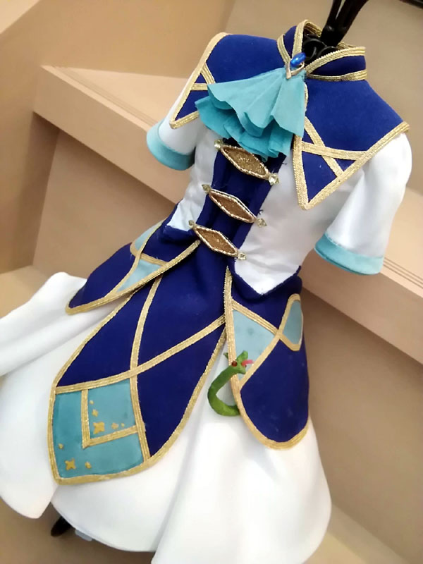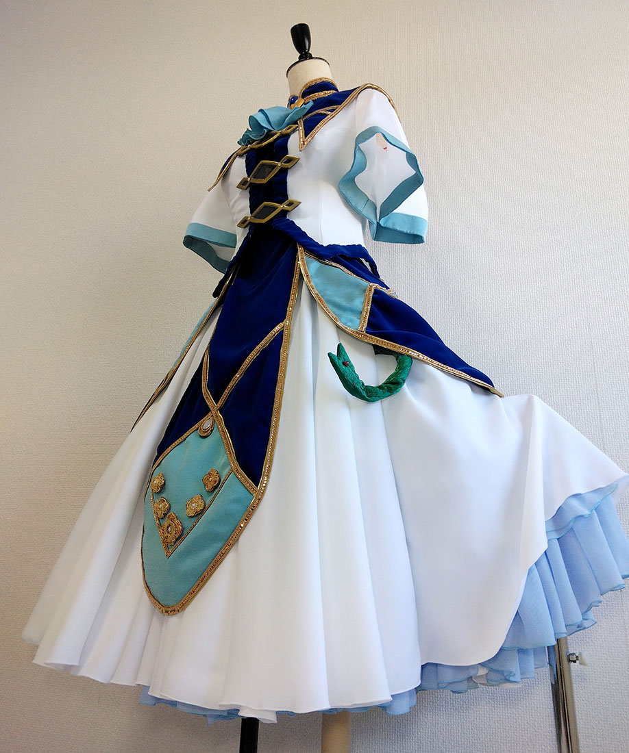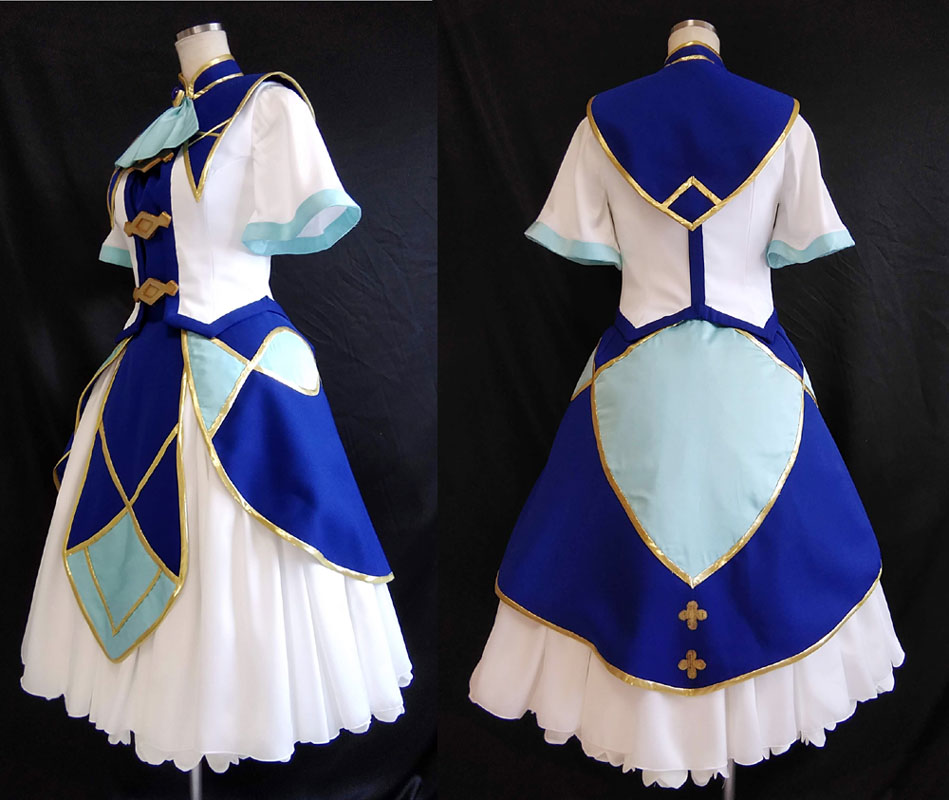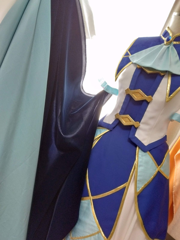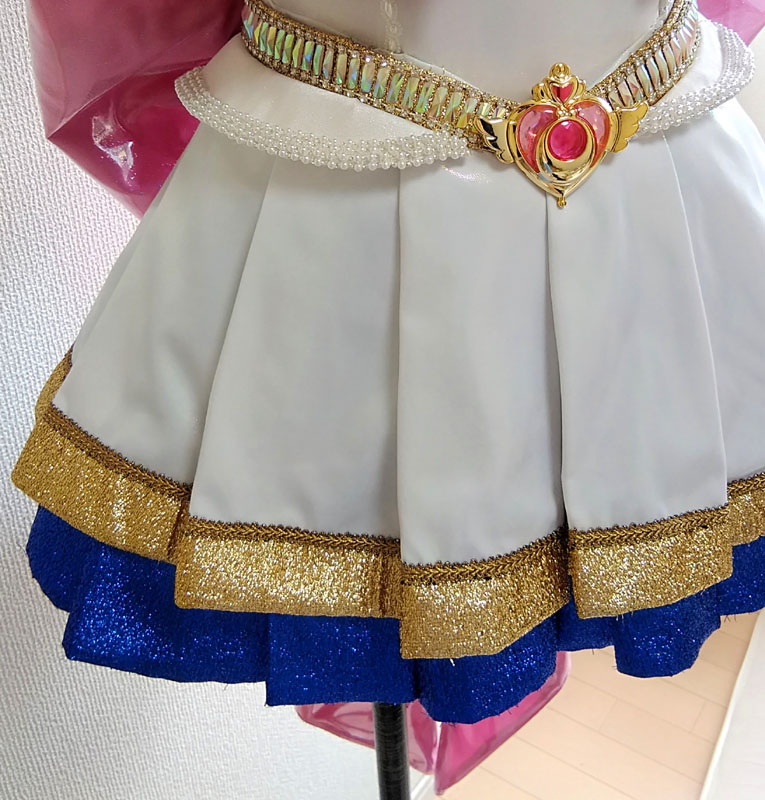 セラムンばかりだった私が今まで20年かけて身につけた技術を結集させ、遂に完成しました カタリナ・クラエス(アニメ版) 超頑張った! 予算はもう、恐ろしくて考えたくない… 自分なりにこれ!という生地を買っては作り買い足しを繰り返し 最終的にいくらくらいいったのでしょう うーん、約8万くらいかしら10万いったかなあ 高い生地は手触りがよく、布の質感もよくわかるし シルエットも綺麗に出るという持論を貫いて 好き放題やった末路がこうなりました いや安くたっていい生地ありますよ!誤解なきよう! いつも手触り重視で買うと何故かその生地が高いだけなんです それはもはや私の性癖、逃げられない宿命 生地の解釈は当然人それぞれですが 今回私は積み上げてきた「好き」を結集させた一着というイメージで仕上げました 白いスカートもペチコートも、セレニティで愛用している二種類を使用 つまりとても柔らかく、透け感のある滑らかな生地なのですが カタリナちゃんのスカートはどちらかというとカッチリした固めのイメージなので なるべくふわっとさせないようにしなければと、作り始める前は思ってました ええ、作り始める前は 白スカートに使ったシルデューサテンは薄くて柔らかい手触りにとても上品な光沢がうっすらとあり サテンと名前は付いているけれど、どちらかというとシフォンに近い手触りです スカラップのペチコートはド派手な光沢のサテンオーガンジー これがもう、ドレープラインが絶品でして 動くとツヤッツヤの生地がめちゃくちゃ映えるんです! 静ではなく動で見て欲しい生地です だがしかし、表のスカートにしてしまうと光沢が目立ちすぎて カタリナのスカートかと言えばそこは解釈が違うんですよね そんな訳で光沢が自慢のサテンオーガンはペチコートに採用し 白スカートで全部を隠してしまうことにしました イエイ! 生地の魅力を殺してしまう暴挙に、こいつは正気の沙汰かしらと思いつつ でもクルッと回った時に中がキラキラしているのが見えるし スカートの裾からちら見えるスカラップはめちゃくちゃキラキラしててかわいい! 自己満足とチラ見えの萌えだけの為にこの生地を使いました そんな極上の生地をシルデューは6m サテンオーガンジーは13+7(追加)で結局20m スカートだけで計26mも生地を使ったんですよ見えますか見えませんよね もう、面白いくらいお金が消えていっていっそ面白かったよ! 普通の生地ならマル一個減らして作れるよ! そして見栄えはきっとほとんど変わらないんだよ知ってるよ! でもこの生地がいいんだよ!仕方ないなオマエは! そしてそして、青い生地も個人的に思い入れのある上質な質感の厚手生地カシドス この絶妙な青色が実はなかなかに見つからないんです 私の中でカタリナの青のイメージは正に「ムーンの青」 ムーンの戦士服(と芝公園中学の制服)も実は毎回、生地の色味に悩まされつつ探してます 青生地というとこれよりすこしあせている青か、紺色に近い濃い青かという感じで ムーンの鮮やかなのにしっかり濃い青みたいな絶妙な色味ってマジでナイ (ポリギャバ系は色味豊富だけど、衣装ぽくなるからできたらなるべく使いたくない) そんな時に見つけて一目ぼれしたのがこのカシドスの青でした 質感もとても上品な高級感があるのがとてもとてもお気に入りだったのですが 残念ながらもう既に廃盤となっており、今後に絶望しております このカタリナ衣装に使った生地が最後… 大切に保管しておいた我が家のストックを使って仕上げました だから生地ひとつ取っても、並大抵の覚悟では作っていなかったりする 何だろう、カタリナ衣装の話だったハズなのにいつの間にかムーンの話になってない? でもホント、そこが私の大切なポリシーでアイデンティティで、人生なんです そんな私の人生のセラムンで使っているお気に入りの生地を結集させて カタリナちゃんを作ってみたかったんです そんな歪んだ愛情わかりますかねどうだろう この萌えポイントと性癖、私しか理解できない私しか萌えられない そんな自己満足が形にできて幸せ! まるでムーンとセレニティに包まれているような幸福感 最高! そうだ大事なこと言い忘れてた! 白スカートにバッチリポケットも付いてるよ! 蛇さん入れて持ち歩かないと!ジオカタ好きとしてここは外せない!! 上着も見て!型紙4回も調整して頑張ったよ! 上着のポイントは、実は見えない部分にあります 着た時のラインを徹底的に綺麗に見せたくて、ボーンを6箇所仕込んであります これで形がカッチリするから動いても変なシワも出ないしシルエットも崩れない! 二次元を三次元で再現する時の隙をなるべく穴埋めできるよう 表面から見えない部分は地味にこだわっています ちなみに生地は白のカシドスです、スカートと同じ生地で合わせてます 地味に難しくて何回も型紙作り直して思案したのが袖の形 動くと思い通りのシルエットにならず、泣きながら夜中中かけてリテイクしました それ