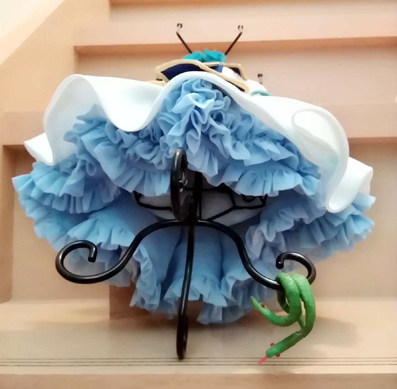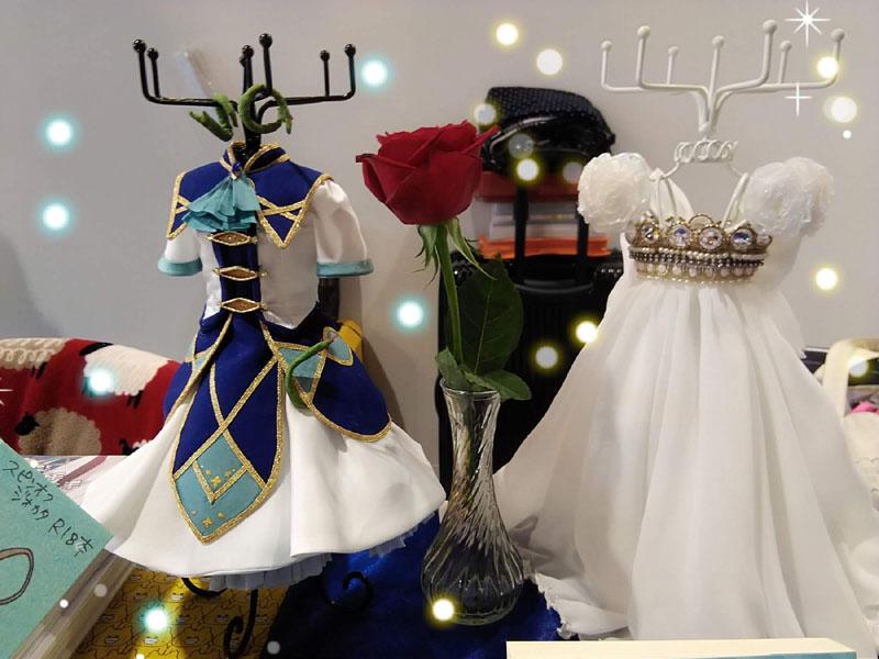 マジか!一体どうした! 実は去年からじわじわ面白いなあとアニメをみていたはめふらの 原作小説をうっかり読んだら沼にはまってしまい 今年の下半期はずっと色々浸っておりました そんな訳で早速作ってみたのがこちら 毎度のアクセサリースタンドです カタリナ・クラエス(小説版) 小説はデザインが巻ごとに違うので一体どうしろと悩みつつ作りました 基本4巻をベースにデザイン統一しました というか5月に出るフィギュアを参考にしました 実は間違えた場所があったりする…… スカート前部分の金の柄を上下どちらも描いてしまいましたが 本当は上のみです ちくしょう痛恨のミス! 下の段に柄がついてる表紙もあるんだよと心の叫び 差分の衣装を一体何着持っているのカタリナさん 毎日同じ服かと思いきやちゃんと変わっているのね デマンドのにょろにょろが作監毎に違うおかげで白い上着を何着持ってるんだ と突っ込みたくなる現象と一致ですね あとデザインの構造が謎すぎる…… 青いスカートの前部分に切り替えがないんですよ 一体どこに上着との境目があるんだろうと想像して 上着を留めてある金具(?)の三つ目に隠して切り替えました あとこっそりこだわりポイントが蛇の玩具! ポケットにいつも忍ばせている感じを匂わせました だからこれはジオカタスタンドなのです 私の一推しジオカタ!キーカタも好き! セラムンの人なのでついセラムンだったらと照らし合わせてしまうのですが 個人的解釈では今のところまもうさはキーカタが近いなあと思ってみてます ジオルドさんが婚約者なのにどうして(笑) カタリナちゃんが普段からめちゃくちゃキースくんに頼っていて、 精神的依存は誰よりもキースくんが圧倒してるなあと思ったり なのでキースくんがいなくなった時の喪失感がすごかったカタリナちゃん… ずっと一緒にいてくれる存在なのだと信じてるし、キースくんも ずっと傍にいてあげるんだとお互いの両思い感が半端ない 最高 ……とここまで言っといてもう一度言いますが私の最オシはジオカタです(笑) 何故ならデマうさが性癖の人なので いやジオルドさんは決してプリンスとは 違う感じではあるのですが 何だろうか、婚約者なのに謎の寝取り感が漂うのは……(笑) NTRが性癖の当方にはたまらないです 婚約者のハズなのに わははは! ジオルドさんの多少の強引さと腹黒さがツボです 執着の仕方が性癖どストライク あとはまだアニメには登場してませんが、セザールの登場がとてもとても楽しみです セザールは一択「星うさ」間違いない 月の光が届かぬ彼方へああ君を連れ去りたいと言ってもしっくりくる 叫んだところで誰にもわかってもらえないんだけどなあああ 小説まで読んでるセラムン好きなお友達!プリーズ! はっ脱線してしまいましたがスタンドの話のつづきΣ 地味に大変だったのがどうせ大半が隠れて見えなくなるペチコート これ、三段フリルらしいのですよね(フィギュア参考) これはもうフリッフリの見せ所だと意気揚々に作り始めたのですが まさか6mもギャザーを寄せることになろうとは…… やりすぎて何ならシルエットが若干変わってしまった 本当は内側にくるんとしたかったのに、フリルが多すぎて セレニティみたいな外向きの裾状態に おまえはいつもそうだ、やりすぎて本末転倒になる こら ついでに制作風景など 白いインナーに青い胸当て これが上身頃のベース ここにスカートを履きます スカートの展開図 これを小さく作っておくと後後に等身大を作るときにラク 上着を着るとこんな感じ 小さい上着を作るのにかなり苦労しました 青いラインをずれないように縫い合わせるのが泣きそうでした 付け襟はめちゃくちゃ綺麗にできてぶったまげた 何だろうこの異様に綺麗なシルエットは そしてカタリナスタンドを携えて 行ってきたのは名古屋の同人イベント はめふらで同人活動をされている七虹さんと合体でサークルを出しました サークル名は「一輪の薔薇」をフランス語にした感じです はめふらもセラムンも、共通しているのは薔薇だなあと思った次第 薔薇一本の花言葉もしっくりきます 調べてみませう 何故フランス語か、バンミュ好きなうさこ氏がやりそうなことである サークル風景! え、すごいジオカタの新刊が二冊並んでる? これはすごい事態だぞ! 二人の勢女がお出迎え これがやりたくて頑張ってスタンド作りました 蛇さん! 公式アクスタ(小説版)にぴったりすぎる 可愛い! ちなみに当方も出したんですよ御本 小説です、なんだこの厚みは……驚くしかない 当日はネメシスドレスのうさぎちゃんで 久々に着ました 最近デマうさやってない やりたいよやろうぜ誰か そんな訳で久々にセラムン以外の作品を手がけてみました 作ってみた感想ですがとにかくパーツが多くて細かい! これ等身大作るのきっと一ヶ月はかかるぞ覚悟しよう アクセサリースタンドは等身大を作る際にもとても参考になる 縮図で先に展開図を作っておくとイメージがつきやすいんです