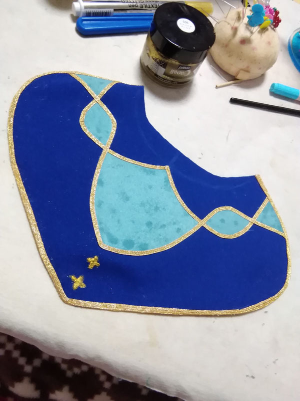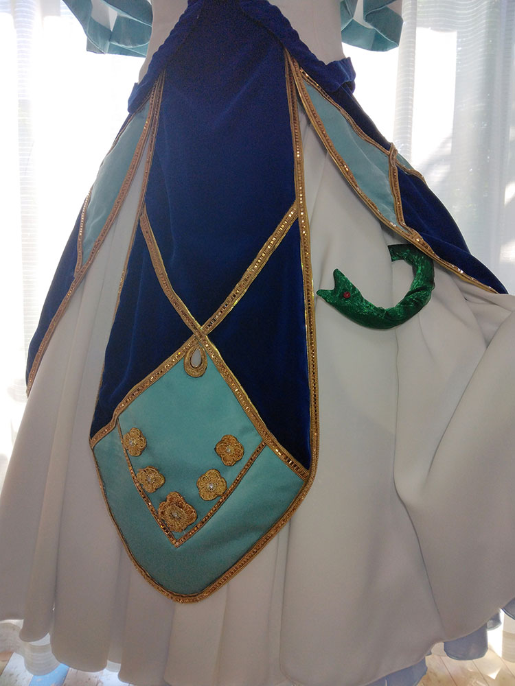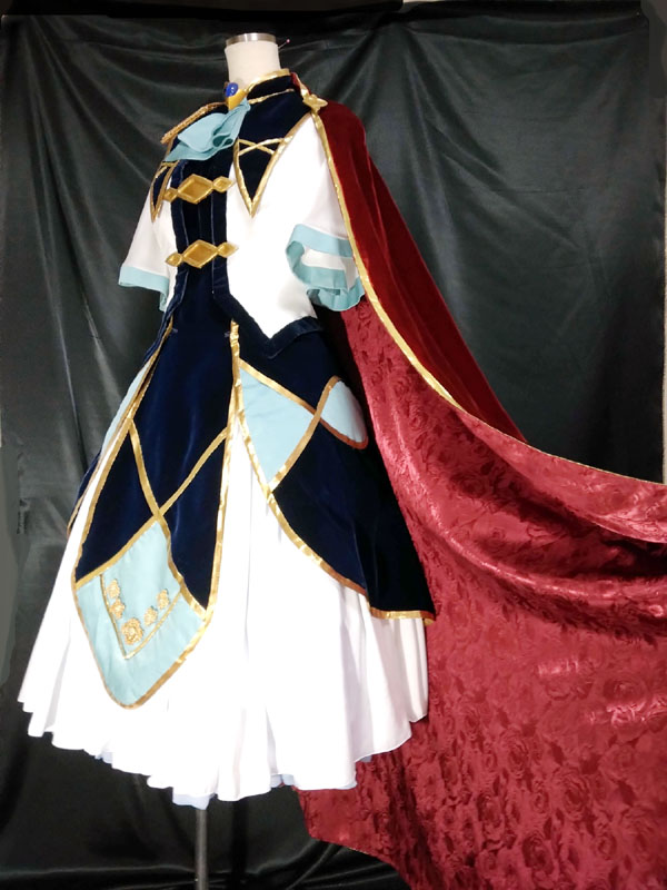 はめふら、カタリナの衣装(3着目) 今年は赤ブーの主要なイベントに参加する予定なので、 肉眼でもキラキラで豪華な公爵令嬢の衣装を見せたく 裾から中身まで全身隙なく優雅に仕上げてみました 何度作っても難しいカタリナ・クラエス嬢 今回もベルベット生地で制作しております(生地色は先代よりワントーン上げた青色 ひだか先生の塗りの光沢感がベルベットぽいんですよね 公爵令嬢の普段着なんだから安くないよな分かります 今回1.2.5巻表紙を参考にスカートの装飾を施しました ベルベットに繊細なラインを描いていくので、縁取りはオール手縫いでお送りしてます(死 上着には7か所にボーンを仕込んでラインを矯正、ウエスト位置は高めに設定 袖の裾にも少し硬めの芯地を入れて張り感を出し、ひらみを再現 二次元を三次元にする際の穴埋めが毎度制作の醍醐味 勿論スカートに蛇の玩具を入れておくポケットは必須 こういう見えない部分の拘りを大事にしていきたい 必死に間に合わせようと頑張っておかげで無事、スパコミ一日目間に合いました おめでとう私! カタリナ衣装の軌跡 今回で3着目の衣装となりました 間違い探しみたいな差分ですがアニメ版と小説版で上着の形やスカートのラインもちょっとずつ違ってます さあ次はどんなバージョンで作ろうかな 他の私服もいいな 誰かやろうぜ! 歴代カタリナ衣装の制作風景はこちら はめふら~カタリナ・クラエス衣装(アニメ版)~ はめふら~カタリナ衣装(原作小説版)~ 折り込んで今回の制作風景のレポです。