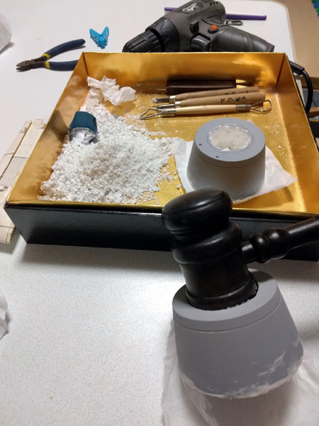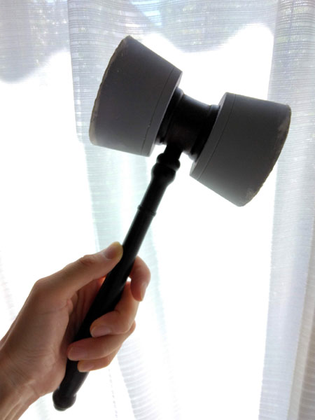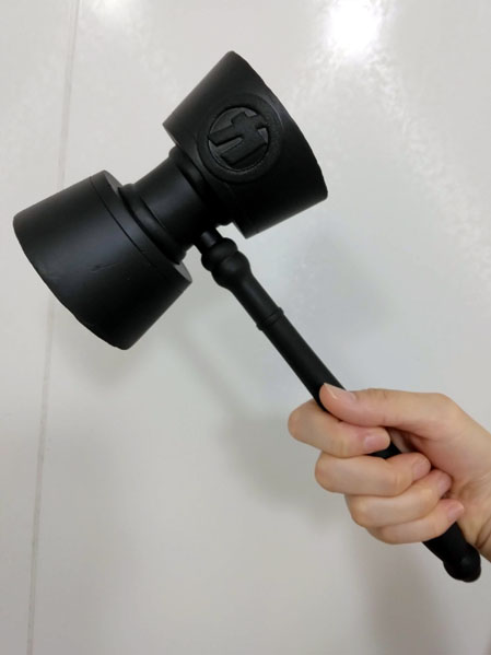 ここ数ヶ月製作ははめふらばかりですが、とにかくやりたいネタが多いので必死に消化しようと全力で走っている最中です セラムンはもう、30年間一切揺らがず好きだから絶対に変わらない安心感が自分の中にあるので 今更他のものにはまっても全然大丈夫 好きなものは減らさず足していくだけのうさこ氏です 減っているのは睡眠時間です 安心して付いてこいや!(どこに そんな訳で今回は急遽脳内会議をすることになったのでこちらを作りました 議長カタリナ・クラエス! 現在夏コミ原稿の真っ只中でして、マジでやばい時間がない でも新刊予定のジオカタ写真集にどうしてもカタリナ5を入れたい! そんな中何とか半日時間を空けて一気に仕上げました 型紙なんてない、超適当 トルソーにあてて適当に切って縫う!おしまい! (でもちゃんと裏処理してるし安ピン使ってないよ偉い リボンはやたら高級です ベルベットです ジオルドさんのマントの余りなんですけどね だからジオルドさんとお揃い!どこかにカップリングの萌え要素をぶち込みたい性癖 ベルベットと聞いて思い当たる方もいるでしょう 前回当方がカタリナ原作版を作る際にベルベット生地のフチ取りを 全て手縫いでしたという事実を 今回のリボンもまさか……?と思ったら なんと今回は新しいアイテムを導入してしまったのです ザ・ベルベット押さえ金!! 地味に高くて(8000円超え)ベルベットそんなに縫わないしどうしようか二の足踏んでいたのですがが そんな過去をとてつもなく後悔する程の仕上がりにガチ泣きする私 めちゃくちゃスムーズに縫えるううううナニコレェェェェ!! 仕上がりも手縫いよりダントツに良い え、前回の私いらん苦労ばかりしてバカだったのでは いやそれよりも更に過去に遡って、ブラックレディの時にどうしてこれ導入してなかった?? ちゃんと揃えるもの揃えてから苦労したって言えよオマエ バーカバーカ! カタリナちゃん衣装もう既に作り直したい 縁どりだけでも直そうかしら そんな文明の利器を前に膝を折った私 もういい過去は振り返らない これからの未来を見つめていく ようこそベルベット押さえ!これからジャンジャン使う!! そして未来だけを見つめ、次なるアイテムを作ってもらう人 脳内会議で必要なアイテムと言えばこれでしょう 裁判用の小槌を取り寄せ ここからカタリナ小槌にカスタマイズしていきますよ 台形の程良い形……と考えたときに思い浮かんだのがプリンのカップ 合わせてみたらめちゃくちゃぴったりシンデレラフィット! 早速カップの中に石膏を流していきます 固まったら穴を開けて小槌に埋めていく ぴったりに合わせていくのが地味にめんどい、らしい(造形担当にマル投げするやつ 合体!じゃーん! もう形できたじゃん!すっげ! カタリナの「カ」はライオンボードで加工です 下地は黒のサフを噴きました 今回ブロンド塗装なので黒地だと重厚感がとても出る そして塗装、トップコート加工 すっげ!陰影めちゃ出た!カッコイイ! これより第○回作戦会議を開幕します わずか一週間で仕上げたうちの旦那さんすごい ついでに合間でいろいろ作った小道具をご紹介 はめつフラグの旗!!(アニメ版 荒々しい旗っぽい生地感をイメージして生地は帆布を使いました マル秘ノート 昔サフィールぽくて買ったバレンタインのチョコのケースがイメージぴったり(ちょっと小さいけど ただマジックで字を書いただけと思うでしょう これマッキーだと黒が薄くて全然映えないんです だから布用のペンを使ってます ちょっとしたポイント いろいろ揃えていざ夏コミ原稿修羅場! 写真集以外に小説の寄稿も書くんですってよこの人 寝る時間マジないでしょう 頑張って突き進め 暑い夏はすぐそこだ