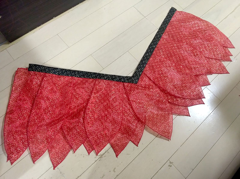 制作物ラストはセーラー火球の紹介です キンモクセイの皇女殿 美弥さんに着ていただくために制作しました セーラーカラーが着いていればセーラー戦士と言い切る皇女様 ライツ達にも襟だけ着けて破廉恥な格好をさせている皇女様 これは誰の趣味なんだ皇女様 生地全面に金糸で蝶柄なチュールを貼り、火球の解釈を叩き込みました カップのラインが独特で調整が大変だった あとスカートのV字切り込みライン ここ大事なので 美弥さんのサイズに合わせて調整していきました タッセルも金の入った細いリボンで手作り オレンジに赤を少し配合してあります チェンジスターは我が家の造形担当のお仕事 尖った三角は石膏を削ってツルツルに これが毎度のやり方です 地味に立体にすると難しい三角形 お星さまに少し高さをつけないと立体にならないんですね ジャーン 火球皇女とセーラー火球 生地がお揃いです ワーイ! ここから少しだけ制作秘話 ブラの型紙は立体裁断 中々に細かい(この後パーツをもう一個増やした) 火球様と言えばかぼちゃぱんつ かぼちゃパンツを侮るなかれ 結構生地を使うんだなこれが 裁断の時点でこんなにどでかくてもパンツにしてしまうと―― こんなにこじんまりとしたかぼちゃパンツに 同じ布量とは思えない仕上がりである ひらひらの花びらスカートは裾が巻きロック処理です いちいち切り離すのがめんどくて繋げたまま裾処理 これだと糸も節約できるんだぜ ふわふスカート 可愛い でも変身すると折角のかぼちゃパンツが全部隠れてしまう切なさよ キンモクセイの飾りはレジンで制作 軽く20個くらい赤とオレンジでグラデーションにしました 来週は年末恒例のコミケ! いざ出陣! |