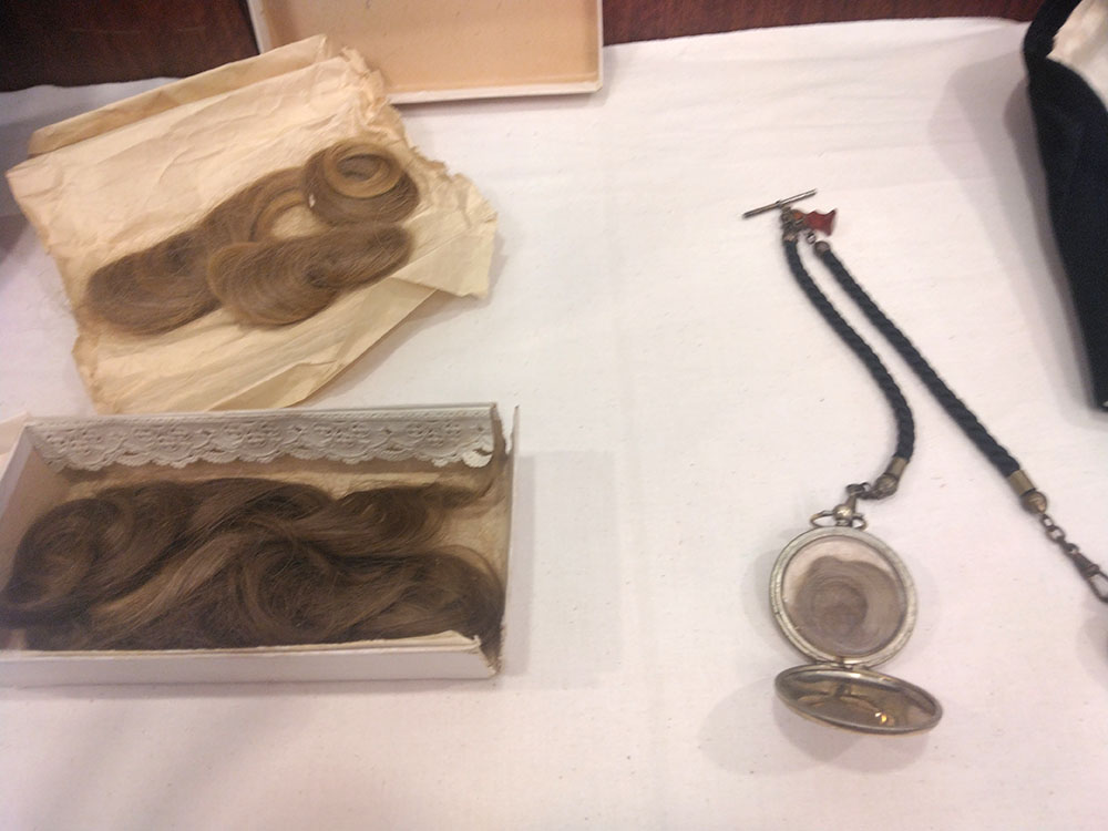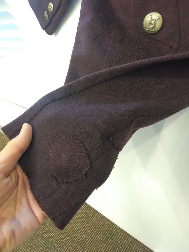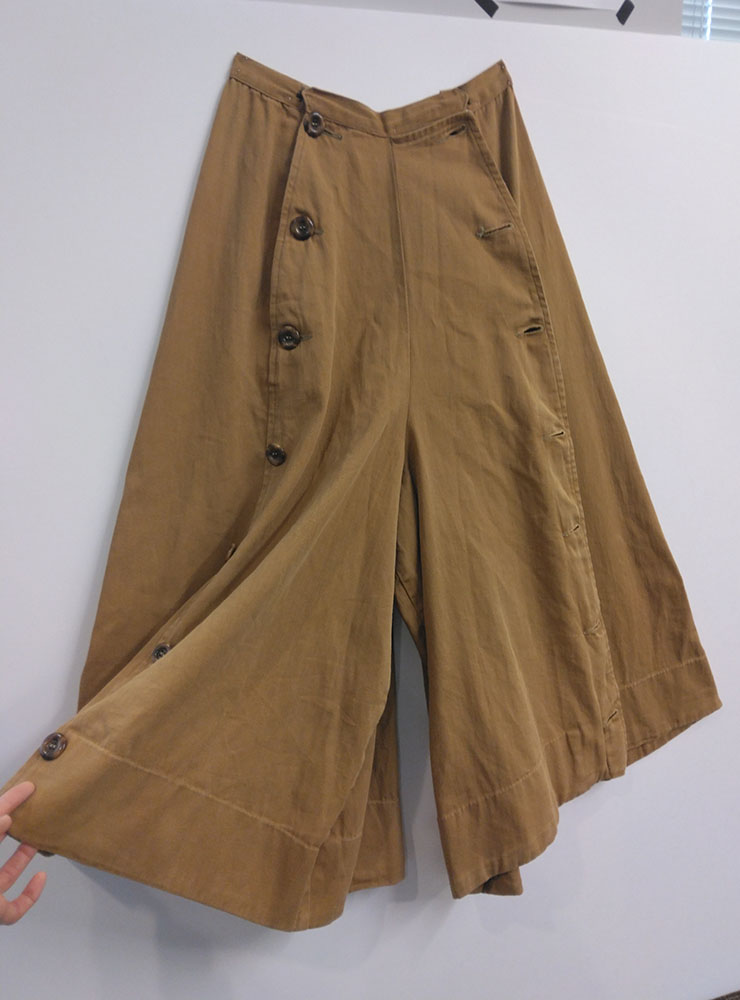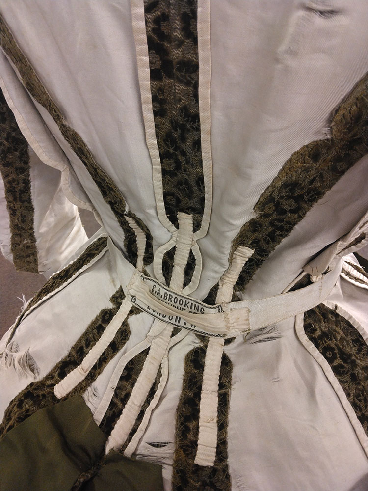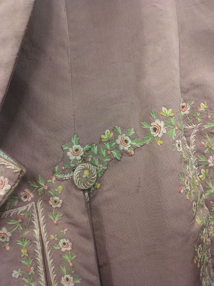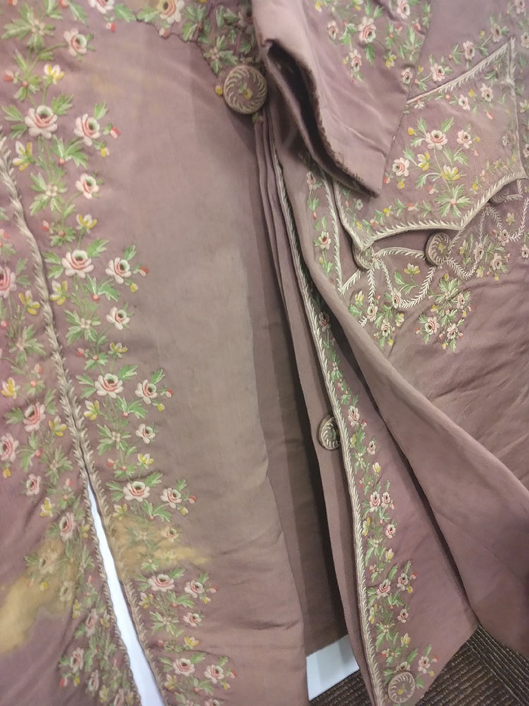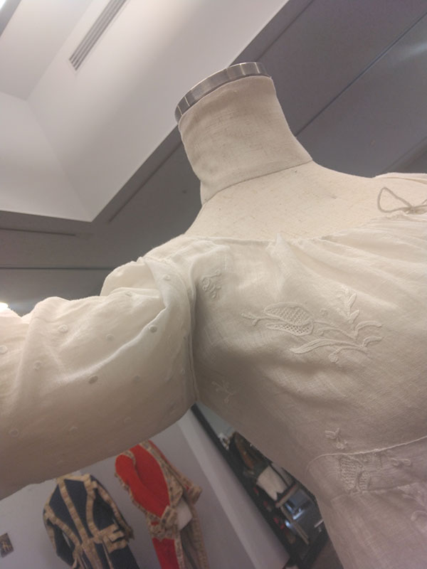 去年はヴィクトリア朝のドレスで、時代ごとの流行を一気に見られましたが 今年はDEATHファッション展ということで、危険性のあるデザインや素材のドレスから、当時の安全性を振り返る展示でこれまた超超勉強になりました (本当は去年あった下着の方も行きたかった!) 以下折りたたんでレポです。というか、自分用メモ 去年の展示のレポはこちら ※映っている人物の顔は、長谷川さん含めすべてぼかしてあります 今回のメイン サイドサドル用のドレス 女性の乗馬の、横乗りの時のドレスだそうです 19世紀末に、女性の安全性を考えて進化していったとのこと 女性が馬に跨るなんてNG、足首も絶対見せたらいけない いかに優雅な姿勢で綺麗なスカートのラインを見せるか いやカタリナちゃんがですね、馬に跨って乗る時どんな服を着たらいいのかなって そこの興味から行ったんですけど ちょっと想像斜め上まっすぐ進んでて目から鱗でした まず跨いで乗るなと、そこからだった成程! そのドレスの形がもはや謎過ぎる 何だろうこの謎のパターン スカートの内側に右膝を入れる空間があり、ストッパーまでついている つま先をストッパーに引っかけて優雅に乗りこなすようです スッゲー 完全に膝のポーズが決まっているデザイン 生地も分厚いウールのような素材で、形が一切崩れない ヒラヒラなんてご法度、セレニティ御法度!そらそうだヒラヒラしたら危ないもんな 自転車にスカートで乗ったら危ないよなワカルー! でもこの形は馬に乗っている時だけしか必要ない 降りたらもうじゃまでしかない膝部分の余白よ それを、このスカートリフターで留めるのがカッコイイ ちなみにこちらのドレスはスカートの後ろにもともとボタンが着いていて、そこに裾のフープを引っかけて持ち上げ、歩きやすくしたりするようです 他にも隠れた部分に機能性を考えた工夫が 馬に乗っている内に動けばスカートは回ってしまう それを固定するのに、スカート後ろのウエストにボタンがあり ジャケットの内側の引っかける部分とドッキングさせたりするとのこと 確か去年も飾ってあったこのサイドサドルのドレス 詳しいことがわからずスルーするしかなかったので、今回ゆっくり解説が聞けてとても良かったです どんどん進化していくサイドサドルのドレス こちらはエプロンモデルというらしく、ズボンとセットで腰に巻くタイプのスカート 馬に乗っている間は後ろの布いらなくない? ていうわけで反対側を切ってエプロンのように腰に巻く これでとても軽くなる 安全性高まる! スナップボタンも活用していて(この時代特許を取ってあるスナップボタン) 事故が起きた時も簡単に取れる仕様だそうです 18604年にサイドサドルは危ないからやめようよと記した女性の日記。 そこから40年後くらいにようやく、女性も跨って乗ろうという流れで跨るスカートが生まれる こちらがそのスカート クロスサドルスカートです ボタンを留める位置で、ズボンにもなるしスカートにもなる 何だこれすごい今でも使えるオシャレデザイン 今日はズボン、明日はスカート、気分で変えられるね! ズボン側を紺色でウラヌス、裏返してスカートにしたらネプチューン 一人でウラネプごっこ、気分はカリスマ え、作りたい誰か着ませんかね こちら去年も展示してあった、ヒ素で染色した死のドレス クリノリン時代のドレスで、長谷川さんが手に入れた時はリメイクしてあったけれど 一度解体して復元したとのこと 最高に狂ってるねとても素敵 ハラショー 1860年頃のドレス(1850年にはミシン導入してる) スカートもほぼ切らず、四角のまま上だけダーツ 巾62cm×スカート10枚 リメイクが主流だった時代、ダーツもほぼ布を切らない布が生きている時代のドレス (ダーツを切り刻むと布の死と仰っていたのが厨二病で最高オブ最高でした) 面白かったのが上身頃の解説 チェックの四角い柄の位置が左右でズレている 左右で布の天地をひっくり返している部分がある これを分かりやすく色分けして、黒は引っくり返った部分だと解説している場面です 布を極力節約する心意気よ そしてデザインとしても素敵 こちらも今回大きな見どころのうちの一つ クリノリン時代のドレスを下から覗くことができる こんなの初めてよスッゲー! フープが複雑に仕込んであります 形状記憶ビクともしない 展示の仕方がとにかく異質 半分くらい裏返してトルソーに着せているんですけど どういうこと (去年ちゃんと表の時に一度見ておいて良かったと思う現場よ) こことか特に痺れた 腰部分に徹底したボーン 絶対ここは細く固定してやるぞ覚悟しろよがひしひし伝わってくるボーン(ウエスト寸法標準46cmの世界) あとこれも興味深かった 遺髪で作ったアクセサリー 当時は死を身近で感じていた時代というのがよくわかる アッこんなところにボタン発見! 堂々と真ん中から割って着脱ですね しかもボタンもしっかり優雅 こちらも大変興味深く 長谷川さんに直接お話を伺った案件 これ