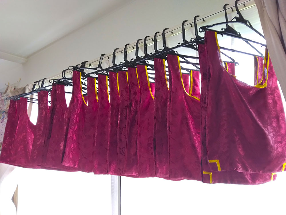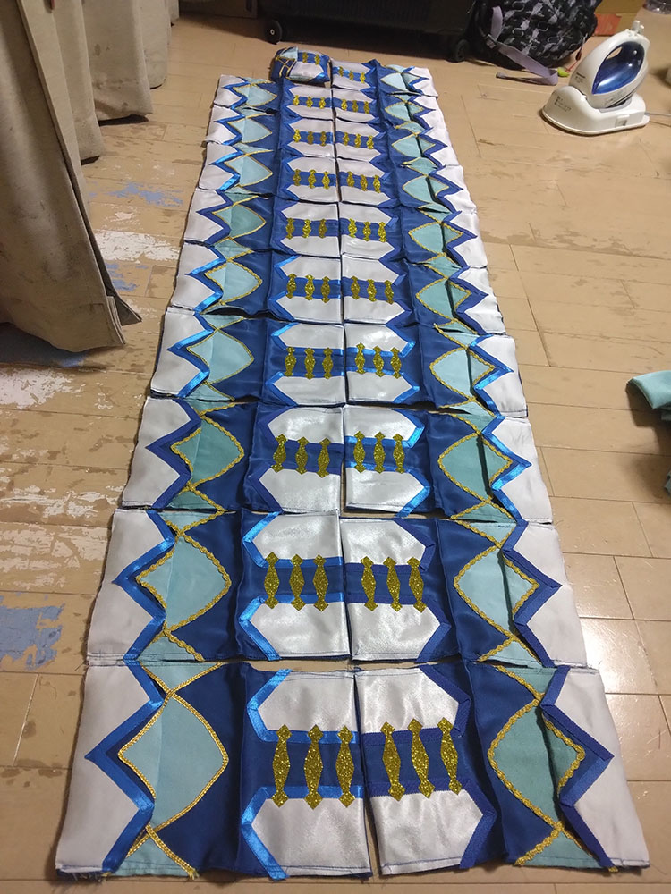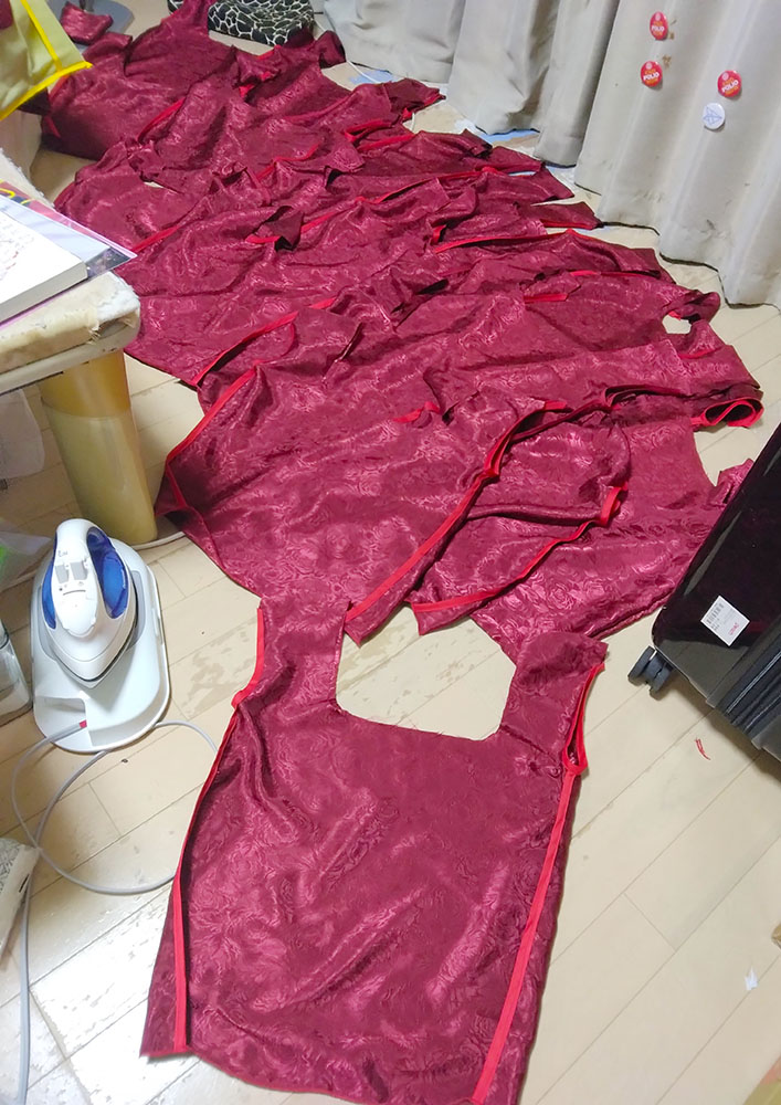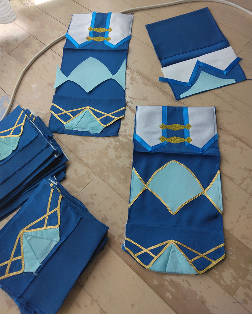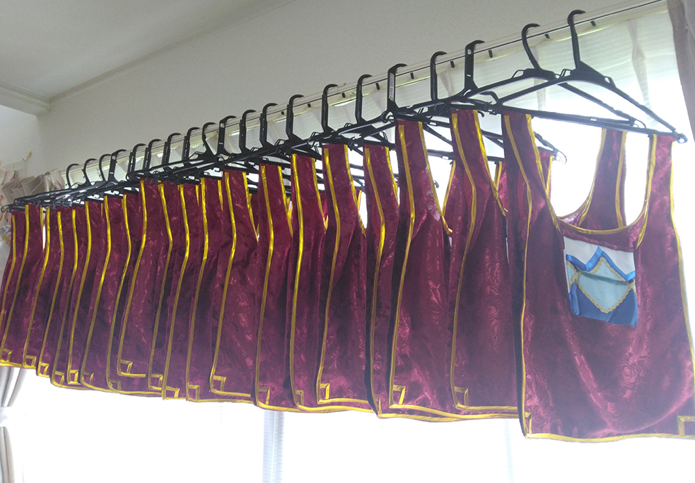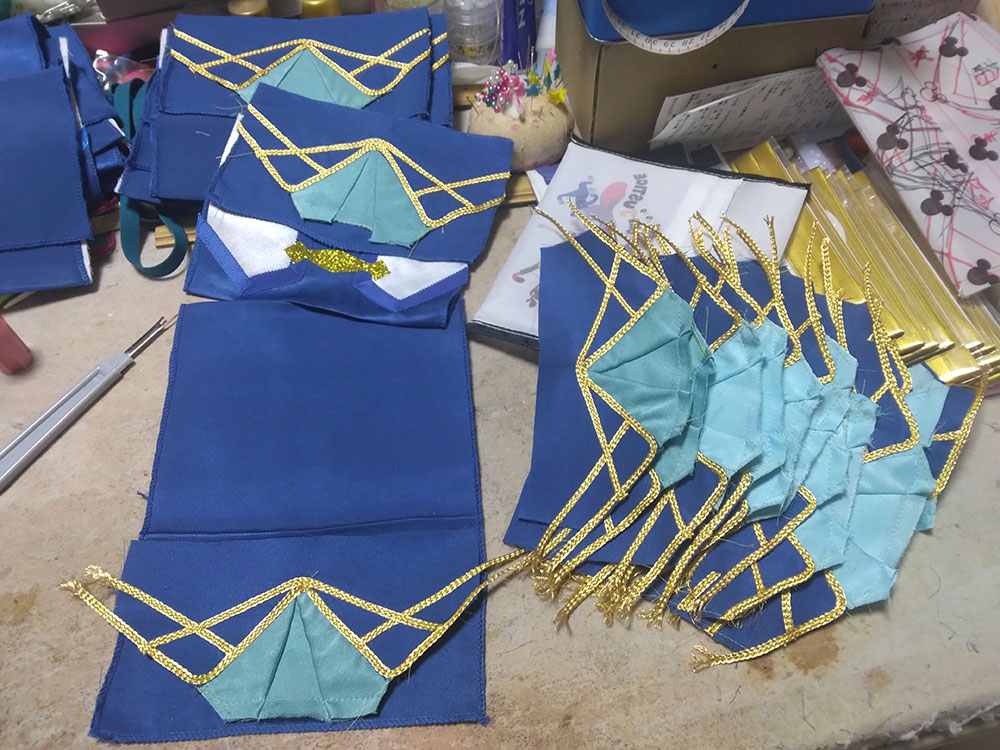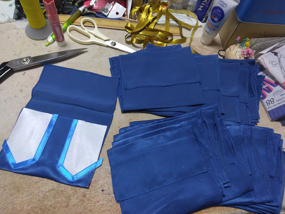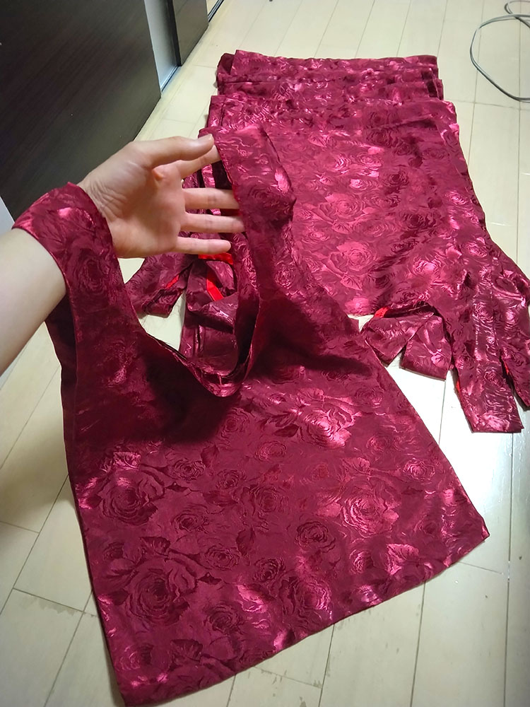 無事終了しました、とてもめでたい! 当日は暑い(気温)熱い(情熱)厚い(本)の三拍子が揃った 素敵なイベントでした わーい! ジオルド・スティアート役 柚希さん なんといつもマリアちゃんとキースくんで遊んでくれる柚希さんが ジオルドさんをしてくださいました! わーいわーい! 優しそうな雰囲気のジオルドさんマジオルド100% 髪の色も明るめでとてもアニメ通り 素晴らしい 是非二回目!こっそり期待!(こっそりアピール アンソロも無事発行されました!おめでとうぅぅ 皆さんの熱い情熱がこもった貴重な一冊です 大事にして棺桶に入れ、この世から旅立つときは共に燃え尽きたいと思います(人生の目標 そんな中、竹乃さんより「こんなの欲しい!」とラフを頂き タイミングが良かったのでジオカタオンリーに合わせ よっしゃいっちょやってみるかと思い立ったので作りました、ジオカタエコバッグ ラフ画からのアフター 違うそうじゃない感がすごいw いやちゃんと蛇ちゃん!付いてるから!合ってる!(言い訳 前と後ろエコバッグ エコバッグに前と後ろがあるなんて だってマントにも表裏あるじゃない(仕方ない 竹乃さんにお渡ししたら早速遊んでくれました ジオルペン いやエコバッグだってば用途迷子ォォ そんな制作風景が中々の絵面なので、そっと過程を置いておこうと思います 何がすごいって すべての単位が20ジオカタなところですちょっとまて一体どういう事 実はこちら今回のアンソロご参加者へのお礼品として個人的に送らせていたいた品となります 全力の原稿に、全力のお礼で返したい そんな想いを込めました ありがとうございます 以下つづきより 折り込んで制作過程 まずはと買い出しから 軽く計算して買っては来たのですが なんだろう、こんなに使う? と疑ってしまうような量、そして値段よ バイアステープだけで10セットも使う!?(使うんだそして足りなくて買い足した) 金の縁取り約50mそんなに使う!?(使うんだそして以下略) とにかく20という単位がエグイ 面白い程予算が足されていく もう怖くて最後は足してねえぜ!頑張れば内部戦士一式作れるかもね!キャッキャ! 余談ですが 大塚屋が70周年記念で紙袋の柄のエコバッグを配布していたので タイミングぴったりで貰ってこれた これは嬉しい! さあ作るぞー できたら1週間くらいの時間で何とかしたい後の仕事がつかえているのだ(6月上旬 そんな志でエコバッグチャレンジ開始! ※これから下は 「何をするにも×20」 が呪文のように出てきますご理解ください まずはジオルドパートから 私の解釈を叩き込んだような薔薇の生地(実際うちのジオルドマントの裏地に使用している) を一気に裁断して縫い上げていきます バイアステープで補強 これを20体 何をするにも×20 ジオルドマントの隅っこのライン、40個分 何をするにも×20 何だろうこれ、部活で大量に出たタンクトップのお洗濯かな こちらはカタリナパート ベースの青生地を6m買うてきて、きっちり使い切る 何をするにも×20 生地は実際衣装にも使用している、お気に入りのシルデューサテンやらトゥインクルサテン 上質な手触りをお楽しみいただきたいエコバック アイロン接着のグリッターラメで飾りを作る 一体に3個×20 何をするにも×20 うおー×20の威力が凄い 上着の青いラインも個体ごとに色差分があったり(使い切って買い足した) 他パーツも一気に裁断していきます 何をするにも×20 クラエス家のマークは、三角のスタッズに宝石付けたよ! さり気ない部分こそ凝りたくなる性分 スカーフの部分はちゃんとミシンで折り目を作る そして何をするにも×20 ちなみに水色の色味にも差分がありますよ 少し明るめがアニメ版イメージ、暗めが小説版の解釈(わざと分けた 金のラインをひたすらに縫う 何をするにも×20 ここらで1週間はとうに超えていて ヤバいこれいつ終わるんだと焦り出す私 そして要所で裁縫上手(スティック を使いまくり あっという間になくなる案件で、10本は買い足してしまった(380円×10 何をするにも×20 形が見えて来たぞテンション段々上がってくるー! 蛇の玩具だって×20 いよいよ縫い合わせ 赤矢印の部分が合わさり、ひっくり返すとスカート後ろのシルエットが出てくるんですよ ここ凝りました いやどこもかしこも妥協せず凝る 己の力を出し切ろうぜyou 何をするにも×20の終盤 楽しすぎてもう時間が経つのを忘れている(そろそろ2週間経過 ジオルドさんとドッキングさせ完成! おめでとうジオカタエコバッグ お幸せに! 完成したタンクトップ(違う とてもやり甲斐のある作業でした おめでとう! 上半期終盤はこのように過ごしました 悔いのない6月であった そして七月、下半期突入と同時に新たな修羅場が始まっていくのであった(続 |