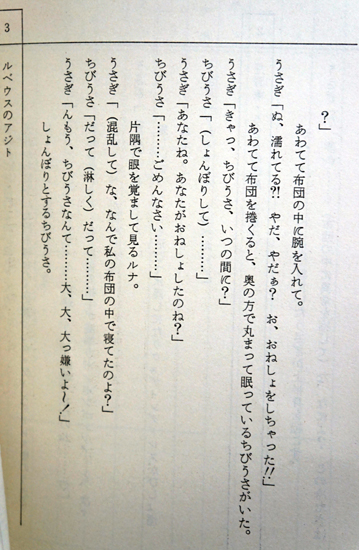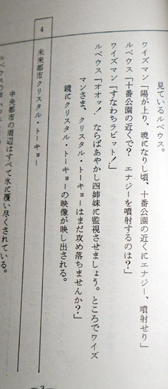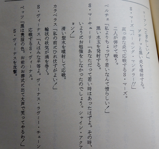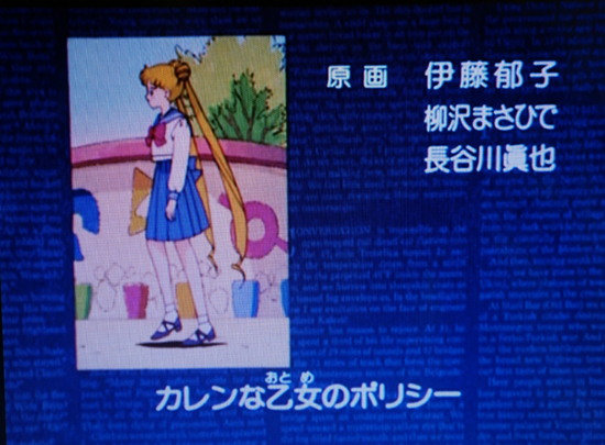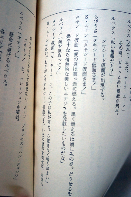一冊読み込むのに時間がかかるので牛歩の歩み 台本読み始めてから改めて演出(絵コンテ)とはなんぞやと思いググってみたら 佐藤順一さんのご説明がある記事を発見したので拝見しました 絵コンテを元にカットを組み立てて画面にしていくのが演出。 脚本の流れを整理して全体を構成していく アフレコのディレクションや音楽のかけ方などの音関係まで考えて仕切る音響監督の仕事までを演出さんが行う うんうん、脚本の細かい整理や構成は演出ですよね 改めてお仕事を確認して、やはり幾原さんの演出は好き放題やってるんだなと確信しました 今回はそんな幾原さん演出回、R伝説の5戦士vsあやかしルベウスのお話 68話 仮題「おねしょする子は大嫌い」 本編「ちびうさを守れ!10戦士の大激戦」 脚本:富田祐弘 演出:幾原邦彦 伝説の伊藤幾原さんタッグに何という仮題よ…… 台本だと普通のおねしょ風景 ここに演出が加わってシュールなルナが誕生する 30分構成な割に結構な尺を取るんですよね顔面アップのルナで この間の取り方が幾原さんのコミカルな演出の特徴だと思います R劇場版でも「息を止めて18秒」あのシーンがあるかないかで全体のイメージがぐっと変わる 緩いシーンがあると一層に他が締まって見えるマジック ちなみにR劇場版DVDのキャプチャー名も「息を止めて18秒」なので笑う! そんなこんなで最初から幾原さんワールド炸裂です そして次がとんでもない大変更です なんとルベウス 初期台本はワイズマンに敬語だと!! ワイズマン様 マ ジ か!! いやそうだよね、ワイズマン上司(?)だもんね この敬語をわざわざタメ語に変えてより偉そうなキャラに演出したのは誰だ、おい ウラネプの関係性も幾原さんが作られた部分がかなり大きいのは知ってたけど ここにきてアニメ版ルベウスのキャラにも大いなる影響を与えていた方だと気づかされる 幾原さん、恐ろしい人 もし演出が違ったら、こんなえらそうな感じではなく ワイズマンに丁寧にお辞儀をしている彼が出てきたのかもしれない 根底を覆したかもしれない事実、26年目にして知らされる 思わず熱く語るしかない 幾原さんの野望として有名な「ウラヌスの花嫁」と並ぶくらいのすげえ事なんだよ!コア過ぎるけど! 歯噛みしてない、ひたすら偉そう ちょっとした変更にも萌えまくる ベルチェとコーアンがちびうさを追い詰めるシーン 大幅に変更也 ちょいちょいとはさんでくるキャラクターを印象付けるカット どんな時でもお化粧直し、素敵な演出 そして原画に名前はないんですが、確実に安藤さんが入ってる 前の回の使い回しカットか と思いきや、これも安藤さんぽいラインとアングル(とにかく下からあおる) 応援に入った? 後日談 後ほどアニメコミック見て気がついたけど、このシーンも使い回しですね 背景だけ変えてるけどコーアンは既出です 安藤さんのこだわり太もも お尻と太ももの付け根に線を一本入れるだけで肉感的になる こんな一瞬にもこだわりがつまっているのが安藤さんの凄さ そしてここからが見せ場!愛の戦士に乗せて内部ちゃんとあやかしの戦闘シーン 台本だと台詞を交わしながら戦っています これをカッコイイ戦いの歌にのせて跳躍感のある止め絵の演出 にくい、にくすぎる →音楽のかけ方などの音関係まで考えて仕切る音響監督の仕事までを演出さんが行う ちくしょう、こんちくしょう……! 劇場版のムーンリベンジも同じじゃないかっ ラソルを聴いて小坂さん冬杜さんタッグに依頼したら とんでもない曲が出来てきたと去年のR上映会で幾原さんが言ってたけど R劇場版は本当に色んな天才が奇跡的に集まって出来たミラクルロマンスな映画なんですよ その人集めの人選が神すぎてにくい幾原さん 作監が伊藤郁子さんで原画に長谷川晋也さんが入る このふたりのタッグがまたとてつもなく素晴らしい Rのブラックムーン編のオープニングのタッグです 特に躍動感のある動きは長谷川さんの十八番 伊藤さんが信頼されていたというエピソードがたまらない(当時の同人誌より) ルベウスとムーンの戦闘シーン ルベウスのセリフが「そのためには、小娘に……死んでもらう」 「死んでもらわねばならぬ」の口調だと少し高貴すぎるのか……? 細かい部分だけど変えた理由が気になる ちびうさの手がぎゅっとなってハッとするムーン からの回想シーン この細かい演出で涙腺が崩壊 さあさあ、この感動シーンに突入する最中に事件ですよ 来ました遂に、彼が! テレレレーレっれっレーテーレレー ルベウス「何を気取って……!」 気取った仮面様! ここの演出がまたしてもすごいポイント こんなにイケメンのカットから繰り出される 薔薇炸裂攻撃相殺シーン 好きすぎてカルタにしてしまいました ナニイッ!ってルベウスだけじゃなく思わず見ているこっちまで突っ込んでしまいそうな こんなに感動のシーンでもどこかでふふっと笑わせてくれる幾原演出に仮面様はよく使われる そう、劇場版の紳士服ヒグチ、然り タキシード仮面様