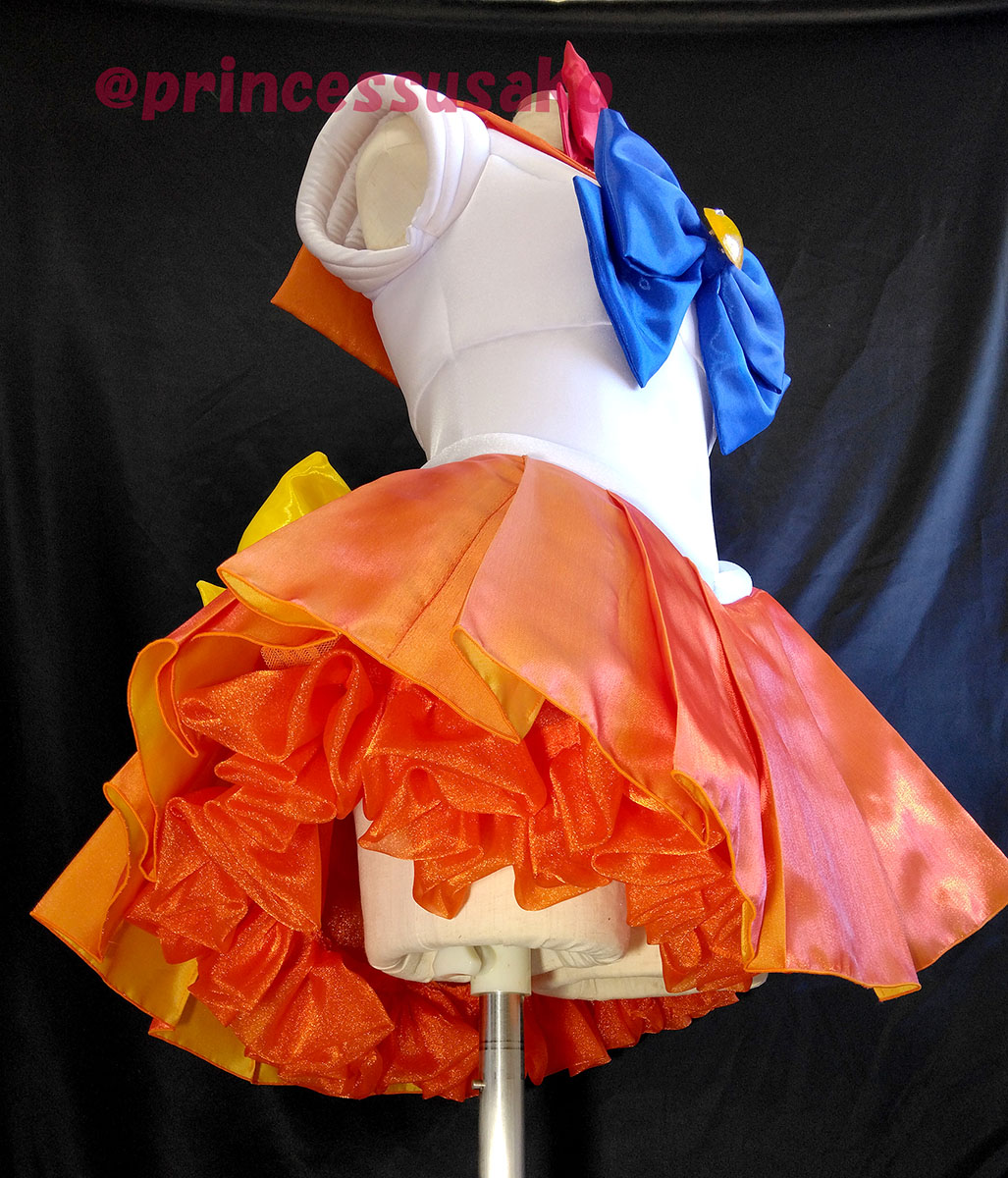 原稿三昧の10月も終わり 気が付けば11月ってあと今年2か月しかないんですかマジかΣ でも実は今月16日のスパークの原稿が仕上がっていないんですよマジで 今週はコミケの当落も出ますし、年末までギアはずっと上げ上げでいきたいと思います ブログの更新を頑張って週一でしていきたいけどまとめる時間がマジで無い 一度サボるともう浮上しなくなってしまうので、なるべく時間を縫って書いていきたいです ちなみに誰かに見せる為というより、自分の記録用にとても大事なんですよレポは 記憶はすぐ消滅していくものなので、その時の細かいレポは人生の記録として本当に重要 コスレポ溜まっているので頑張って写真整理して進めて行けエイオー! 今回は9月(少しだけ10月も)と頑張っていた内部五戦士の制作レポラストです 毎回全力ではありますが今回の戦士は特に、色々改訂した部分があり 27年間作り続けて来た中でも最新版のセーラー戦闘服と言っていいかと思います セーラームーン(無印) リボンタイプは只野さんver オーガンジー重ねで艶感up! マーキュリーの青と差分を出す為にスカートはコールダイホットとポリエステルダイで二段階染め ステージ用ふわふわペチコートも内蔵、着脱可 勿論こちらの生地も染めました 〆切ギリギリの中、このペチコートの工程で各戦士+2時間を使ったので、時間にすると10時間の追加 マジ間に合うかの瀬戸際チャレンジでした セーラーマーキュリー リボンタイプは只野さんver オーガンジー重ねで艶感up! 水色サテンにグリーンがかったブルーのオーガンジーを重ねて色味を調整しました リボンのオーガンジー重ねで変わる色味はマーキュリーが一番良かったです ぶっちゃけマーキュリーをこの色にしてくて、他を全部オーガンジー重ねしたくらい ステージ用ふわふわペチコートも内蔵、着脱可 ムーンとマーキュリーの青色差分 この拘り大事が大事である(しみじみ セーラーマーズ リボンタイプは只野さんver オーガンジー重ねで艶感up! 後ろリボンがスカートより濃い赤なのがポイント 青も100色あれば赤も100色ある ステージ用ふわふわペチコートも内蔵、着脱可 セーラージュピター リボンタイプは只野さんver オーガンジー重ねで艶感up! 私はいつもピンク色を肌色に寄せて少し淡めにしてしまいがちでして アニメの派手なピンクと比べるとちょっと足りない感じもするかなと思います 場合によりもうちょいピンクを濃くしてもいいかもしれません ステージ用ふわふわペチコートも内蔵、着脱可 セーラーヴィーナス リボンタイプは只野さんver オーガンジー重ねで艶感up! スカートの裏が実は黄色(偶然)でヴィーナスの為の生地なのではと目を疑いました スカートで使ったスパークシャンブレーオーガンジーは 縦糸と横糸が違うのが特徴で、横糸が黄色なんです とても面白い (ちなみにジュピターの緑の裏側は青色です、まこ亜美!!) ステージ用ふわふわペチコートも内蔵、着脱可 そしてこちらの衣装をですね パフォーマンスの方々が着てくださって完成するんです 私の9月が報われた瞬間。。 これは、すごい 趣味のコスプレだと。。。? 最高によく仕上がったなと思うのがレオタ胸元の切り替えなんですが 立体にしたので影のラインが出て、写真に撮っても飛んでないんですよ これはよくやった、影最強(セルフ拍手喝采 あとスカートの丈もパフォーマンス用にいつもより長めにしたんですが このバランス戦士の黄金比かも? いつも如何にスカートを短く足を長く見せようかと 試行錯誤をしてきたので、逆に長くするというのが斬新で目から鱗でした あとはよく見るとマーズの赤とムーンの赤も変えていて、腕のプロテクタの色を見ると分かりやすいかなと思います 各戦士身長に合わせて腰の位置をイメージするのも地味に大変で シルエットを決定させる大事なポイントなんですが ここの調整も修正なし一発でOKだったらしく ここでようやく肩の荷が下りてホッとした製作者 特に高身長のジュピターの腰の位置が難しいんです 今まで数百人の戦士を作ってきた経験の感覚で、大胆にも繊細に頑張って調整しました セーラームーン うさこさん 完膚なきまでにセーラームーン ポージングも流石すぎます! セーラーマーキュリー やえぞーさん マーキュリーのお淑やかさが滲み出ていて素晴らしい。。 セーラーマーズ あかりんさん カッケー! マーズはすらっとした脚が最強ですよねハイヒール素晴らしい セーラージュピター VEGAさん 身長と腰の位置の高さがヤバい ジュピター過ぎる あと立ち姿のポージングか凄い 奥行きがあって感動なんですパフォを見てくれ セーラーヴィーナス みたろさん かっわーーー! 動きも正にヴィーナスそのものです 当日のパフォーマンスの動画も見させていただきましたが、 音楽も映像も演出も素晴らしく、私の27年間続けてきた セーラー戦士服の三次元化計画の集大成を見た気がします 動くスカートがヤバいくらい可愛いんですよヒラヒラしてるの是