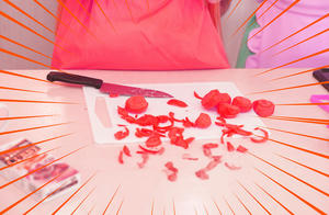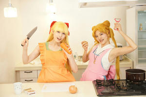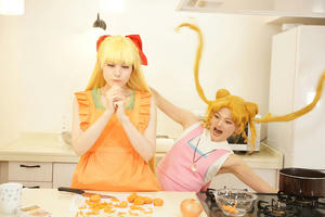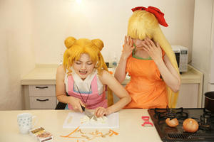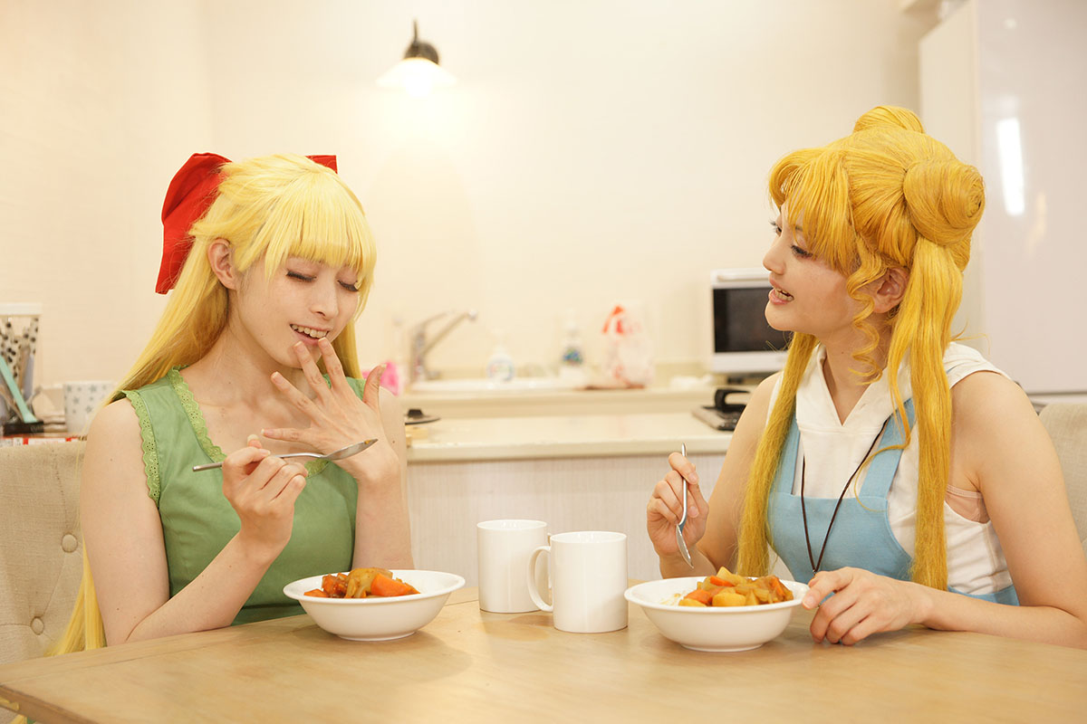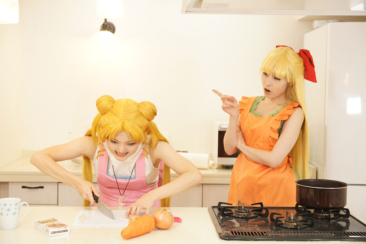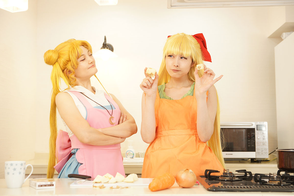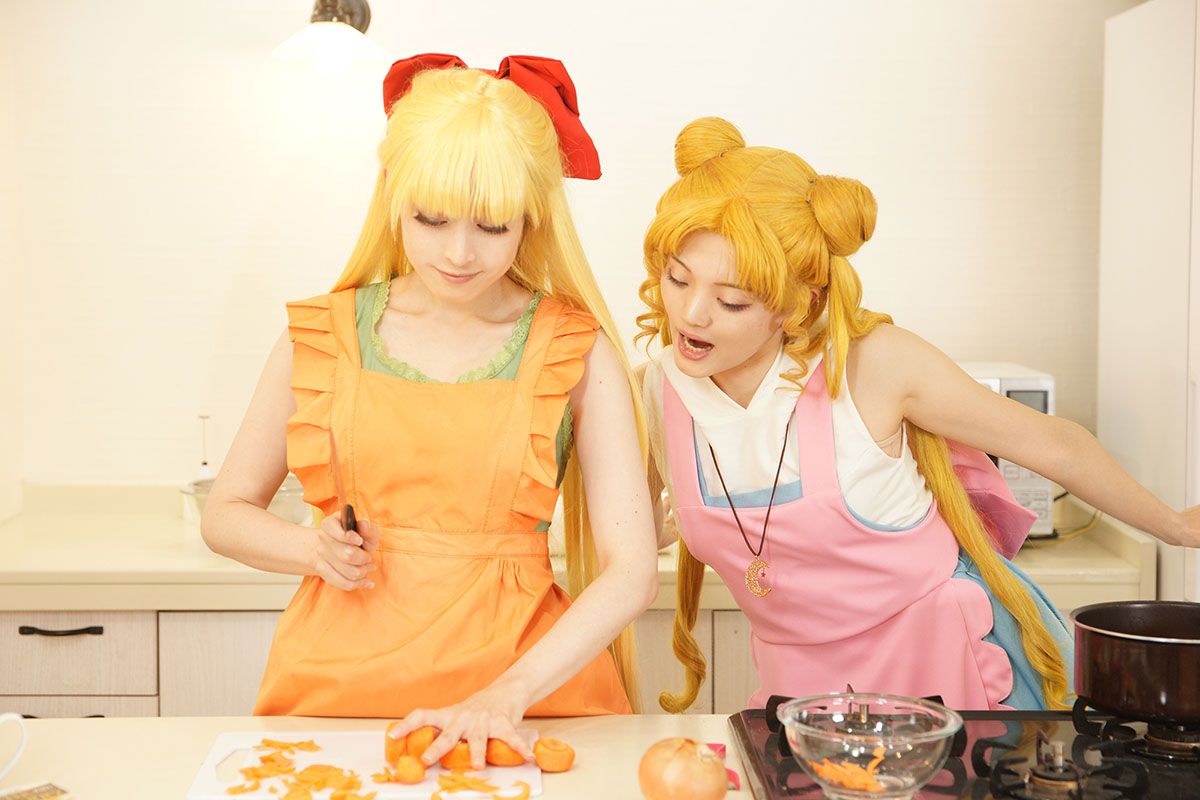 「66話 うさぎの親心? カレーな三角関係」の回を うさぎと美奈子ちゃんだけで再現したよレポです キッチンが使えるスタジオで撮ったので仕込みも一からみんなでやりました このお料理番組不穏な予感しかしない編 うさぎ うさこ 美奈子 柚希さん 撮影 小諸さん スペシャルサンクスお料理スタッフ ゆみさん、隼人さん トントントントントン(軽快な包丁の音) フリだけでしたあるある 見てよこの仕上がり(えっへん うん、この仕上がりさすがうさぎちゃん、ねぇ? ※スタッフが楽しく不格好な形に仕上げました さあさあいくぞ再現したかった例のシーン 豪快にニンジンを切って行く美奈子ちゃん ダンッ ……指切った ※毎度うさぎの髪はセルフ投げです 美奈子ちゃん指が落ちてる! 救急車呼んで~!!! テッテーテッテーテレレー♪ 顔芸超楽しかったです ニンジンわざと指っぽい形に作ってくれたスタッフも超楽しそうでしたワーイ あとは玉ねぎを切り刻んでしくしくしたりなど 何気にココ凝ってるポイント 使用したカレールウですが、本編を参考におそらくこれだろうと思われ ブイヨンペーストも付いていてちょっとお高めの価格設定です結構スパイシー 尚完成したカレーはスタッフが美味しくいただき(定型文) アフターはお茶のみとなりましたとさ めでたしめでたし ※ちなみにカレーにお肉は衛生面を考えて入れず。100パーお野菜のみ 肉の代わりに唐揚げを買ってきましたとさ