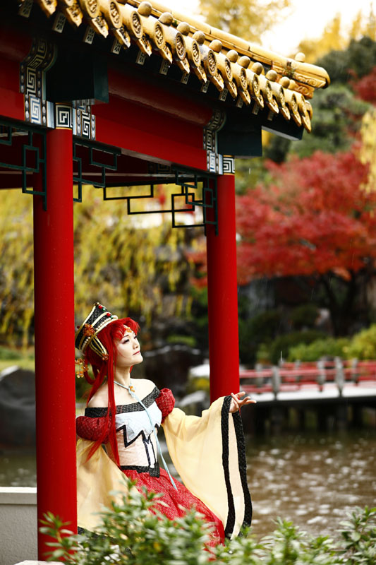 と叫んだら宮坂さんが撮ってくださいました やった! 撮影 宮坂さん キンモク星丹桂王国、第一皇女火球 生地全部に蝶柄の金糸のチュール貼ったんですよ、頑張りました 生地の質感を綺麗に撮っていただきありがたいです 場所は某中華庭園の公園です ロケは全然してこなかったのでロケの許可証申し込んだのも初めてでした 貴重な体験でした ていうか火球は別に中華の姫ではないのですが 格好からして背景中華しか合わないだろ 悩ましい人 優雅な雰囲気出してますが ……実は腕がこれ以上あがんないんですよ(服の構造上 そして超絶晴れ女にはあるまじきくらいの大雨に降られるΣ これ12月です 何してるんだろう皇女様…… うーん、降ってるなあ(優雅に佇む心の声 雨の確認しかできない皇女様(ポーズがこれしかできない