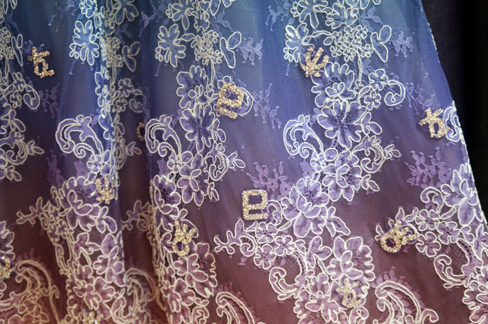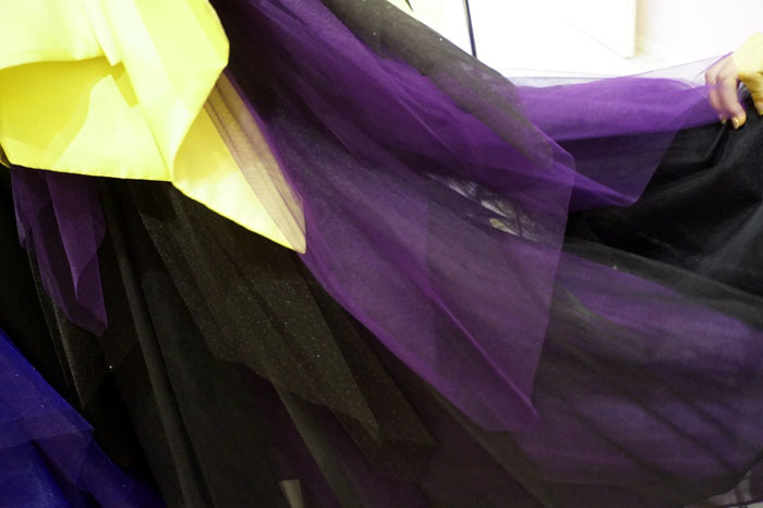 実はこの装飾部分は薄いチュールに全部乗っていて