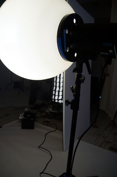 ソフトボックスにグリッド 壁の間に衝立を置いて