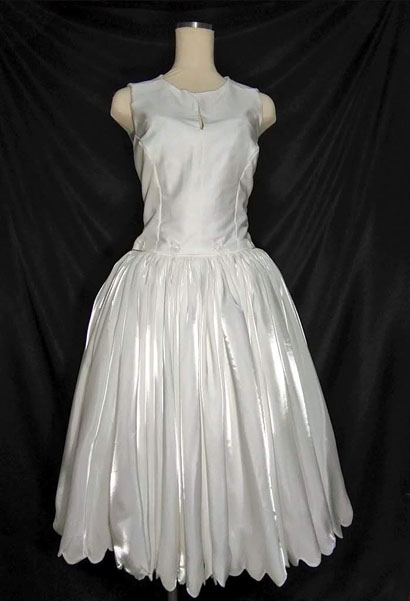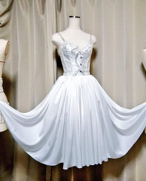 白スカートに使ったシルデューサテンは薄くて柔らかい手触りにとても上品な光沢がうっすらとあり