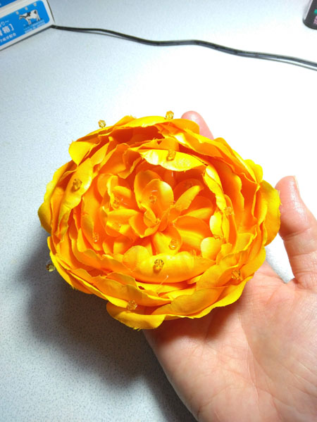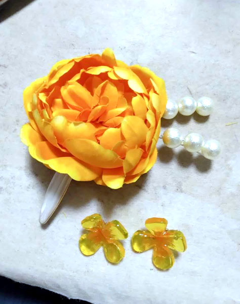 腰元の花は大きめなので頭飾りの3個分で増量しています