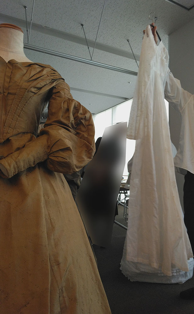 当時のドレスが触りたい放題で、生地の質感やボーンの硬さまで味わえました