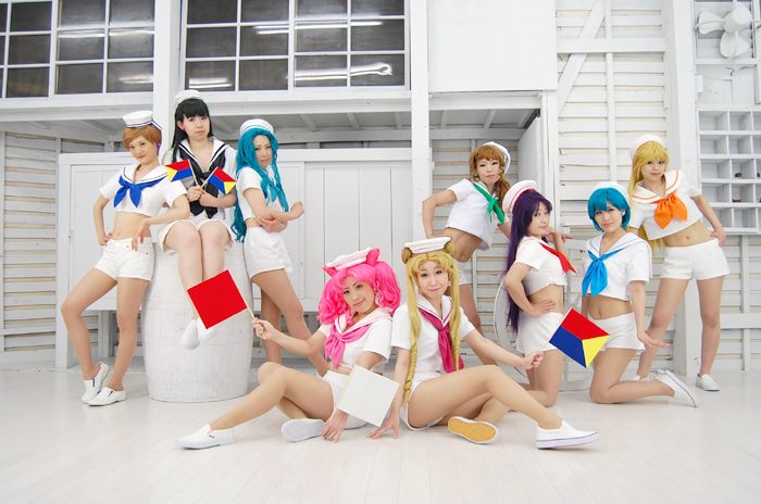 日曜はワタクシ主催のセラムン撮影会@関東第二弾! 2着やりましたがどちらも原画集のイラスト衣装です 前半は水兵さんv どうせなら全キャラできるようにしよう なんて考えたせいなわけでリボンの量が半端ない! うさぎ→東アオコさん ちびうさ→長瀬琴乃さん レイ→にゃんちぇりさん まこと→SAYURUさん 美奈子→苺林さん はるか→うさこ みちる→大槻甲斐さん せつな→AKANEさん 全員で並ぶと度迫力ですミ☆ そして原画集のポーズ♪ 黄色い笛を持っていったのに どこにしまったか忘れた! 6時間しかなかったのであわてて2着目にお着替えです。 |