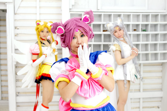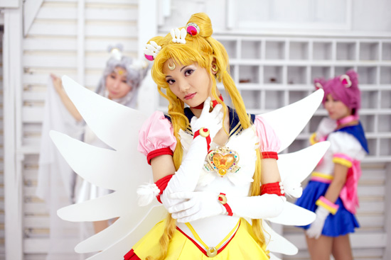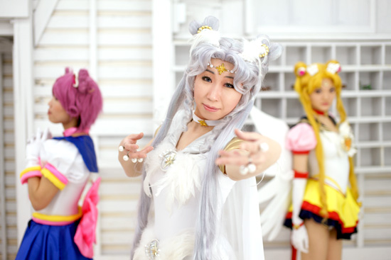 両脇にウィッグと羽を抱えてガラガラガラ~