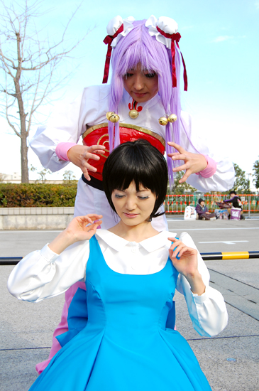 今年も変わらず妄想オーラとアホな子パワー全開で行きたいと思います 早速ですが年明け早々 帰省がてら久しぶりにガタケに顔を出そうかなあと思ってます コスガタではなくガタケの方で 一体何年ぶりでしょうか 何も変わってないといいなあvv というわけでつづきから 年末の冬コミレポでございます あ、 ↓でもう年始の挨拶してましたね 忘れてました~ あかね→うさこ ムース→倖紘さん シャンプー→にゃんちぇりーぬ 校長→Kouさん さり気に何年越しの合わせだった事か! やる気が前日まで出なくて1日で完成させた制服です シンプルなので余計に拘って仕上げました 裏地全面使用で裏も表も縫い目なしです ハイウエスト仕立て 切り替えしなしふわふわスカートには パニエが5重に仕込んであります さり気に一番苦労したのが 襟部分でした 5回も作り直して ようやく納得いくラインになりましたよ にゃんちぇりさんシャンプーも可愛かったですv アイヤー!! 横恋慕が大概に大好物なおなごですが らんまに関してはこの正統派カップルが好きですv いつまでもツンデレプレイばかりでもどかしいですが それがカップルに見えないから好きなのかもしれません 完成されたカップルほど見ていてつまらないものは無いです 一歩後ろから主張するあかねさんv とにかくもう校長が大人気でした ヤシの木のおかげで 目印と集合場所はすぐ発見☆ ここら辺から段々アホになって参りますよ↓ ベタですがこれがらんまの世界ですね フルボッコも基本です! 憲法を教わるシャンプーさん 洗髪香膏指圧拳! 後ろからムースがひょっこりと それでもあかねはまだ素直な方だと思います らんまが照れ屋過ぎるからあんな感じになっちゃうだけで デマ様くらいの強さとまではいきませんが 少しはリードしろというものです お次は翌日に参加してきた おかしの城レポでございますミ☆ |