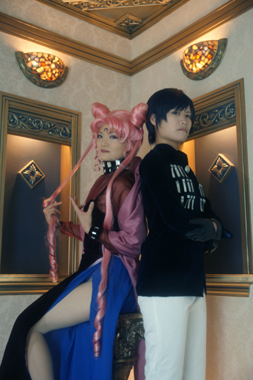 桃色娘と青色青年コンビ