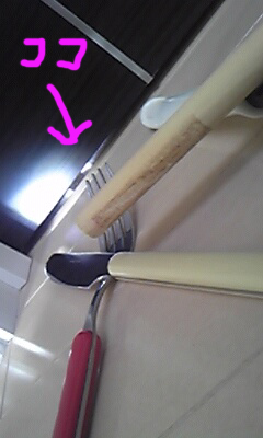 必死に動かしてなんとかフライ返しが挟まる程度
