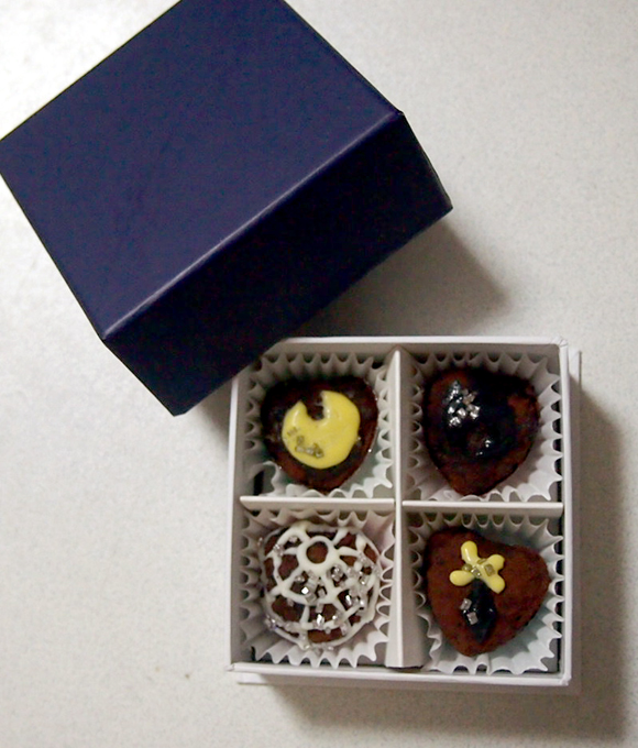 今年のマイ手作りチョコは白月と黒月を同じBOXに閉じ込めてみました