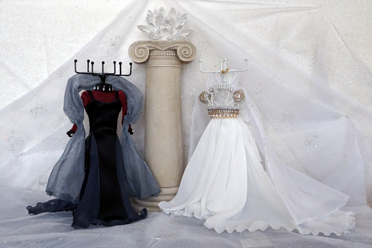 本体ドレスは等身大と同じ絶妙な色味のベルベットを使用しました