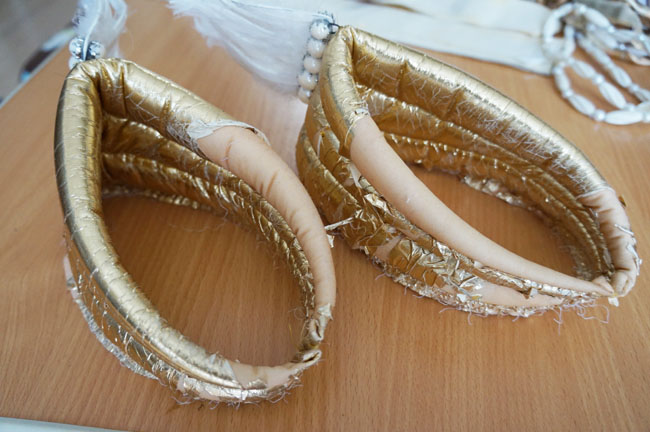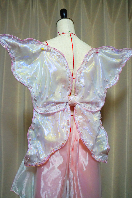 だがしかしビーズを飾りすぎて重くなり、リボンのシルエットが変わるという本末転倒な始末に