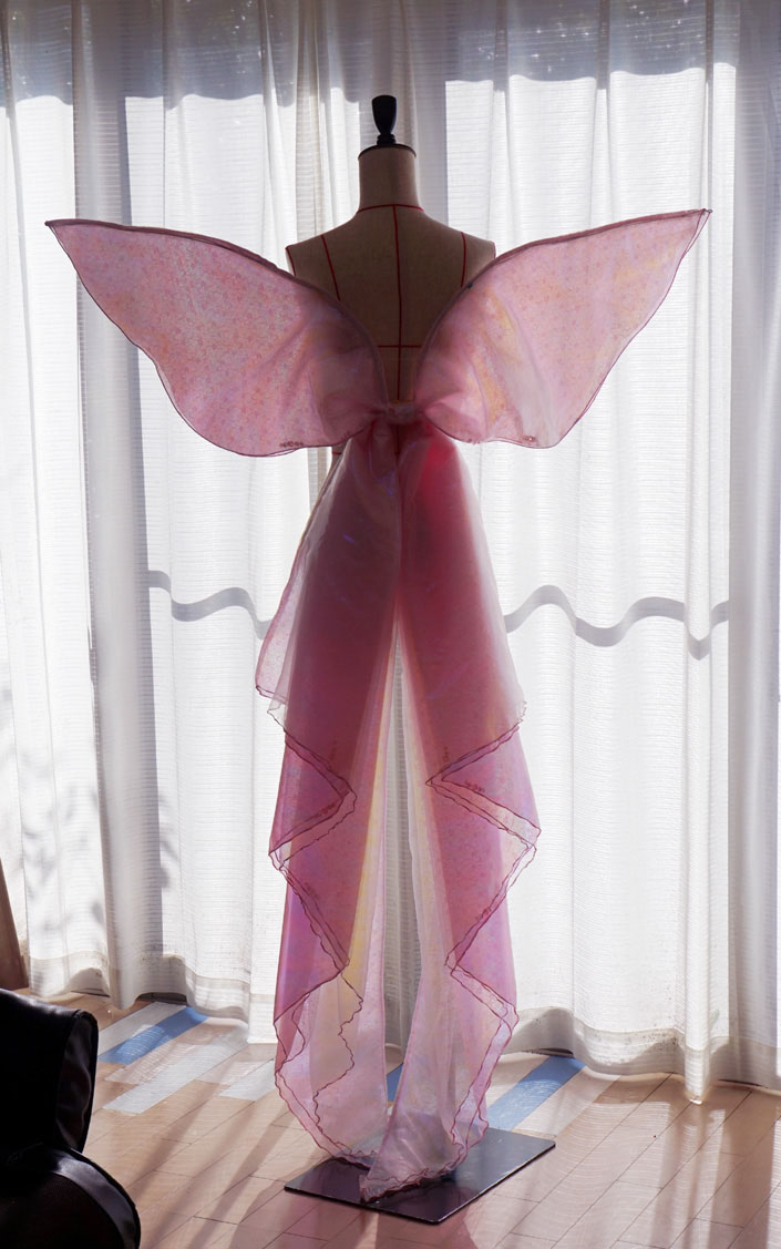 ハードチュールでハリも出しているので計6枚の生地を組み合わせました