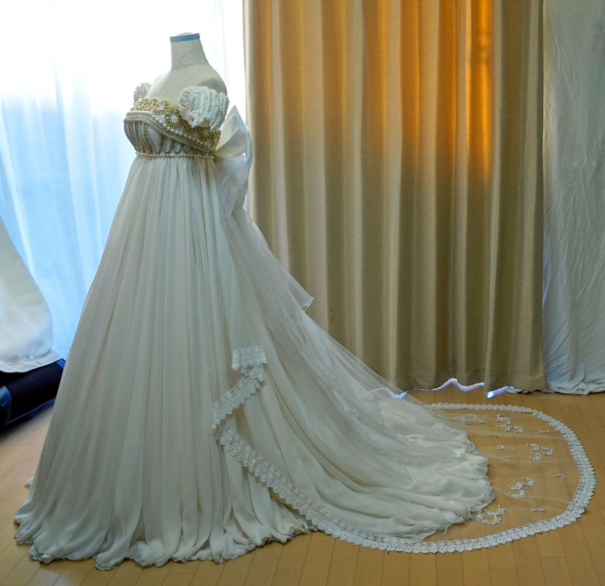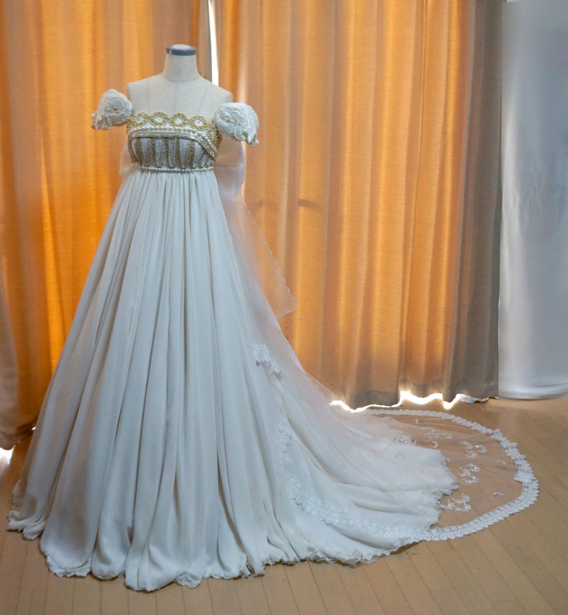 生地は柔らかいパウダーシフォンをたっぷりと使用