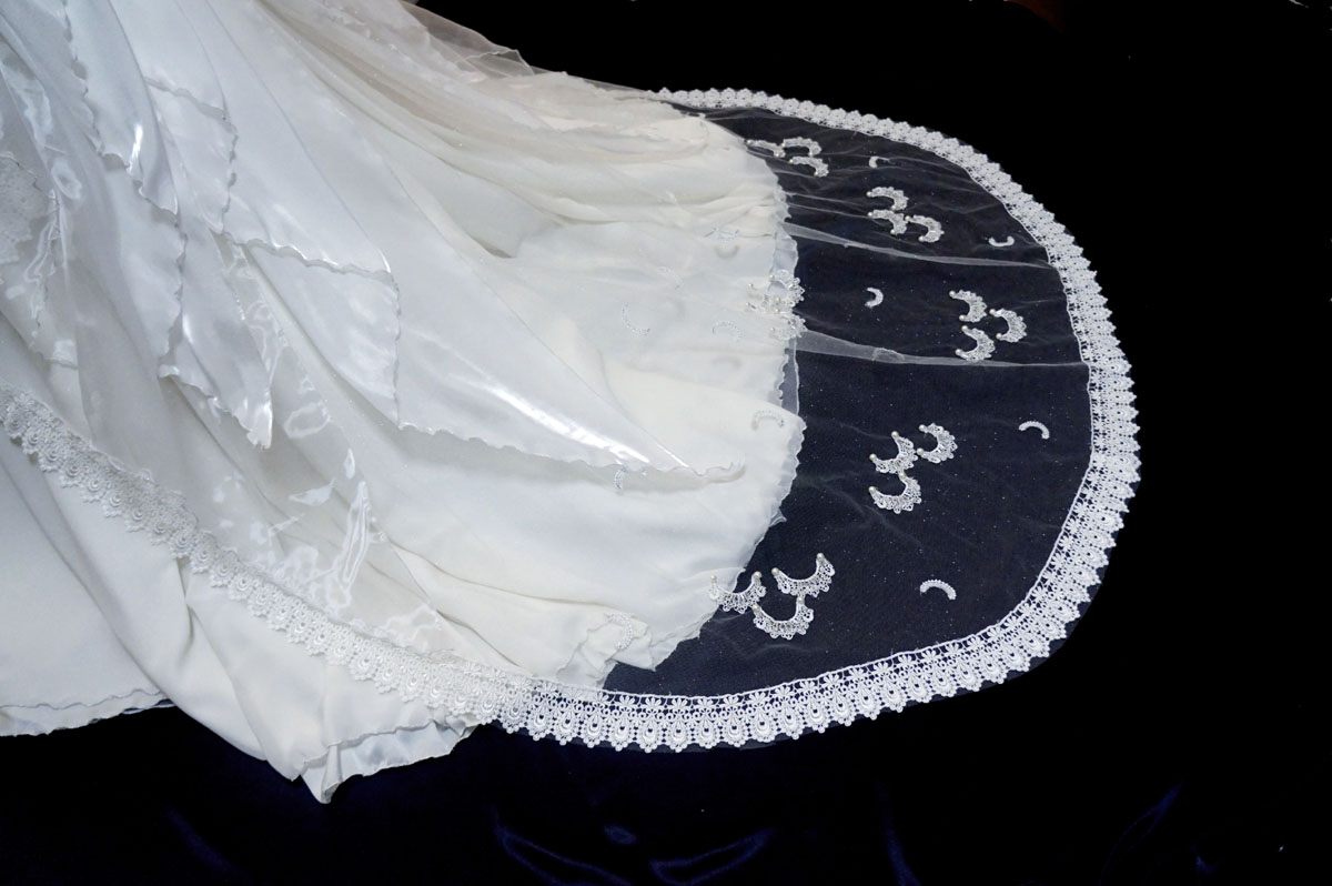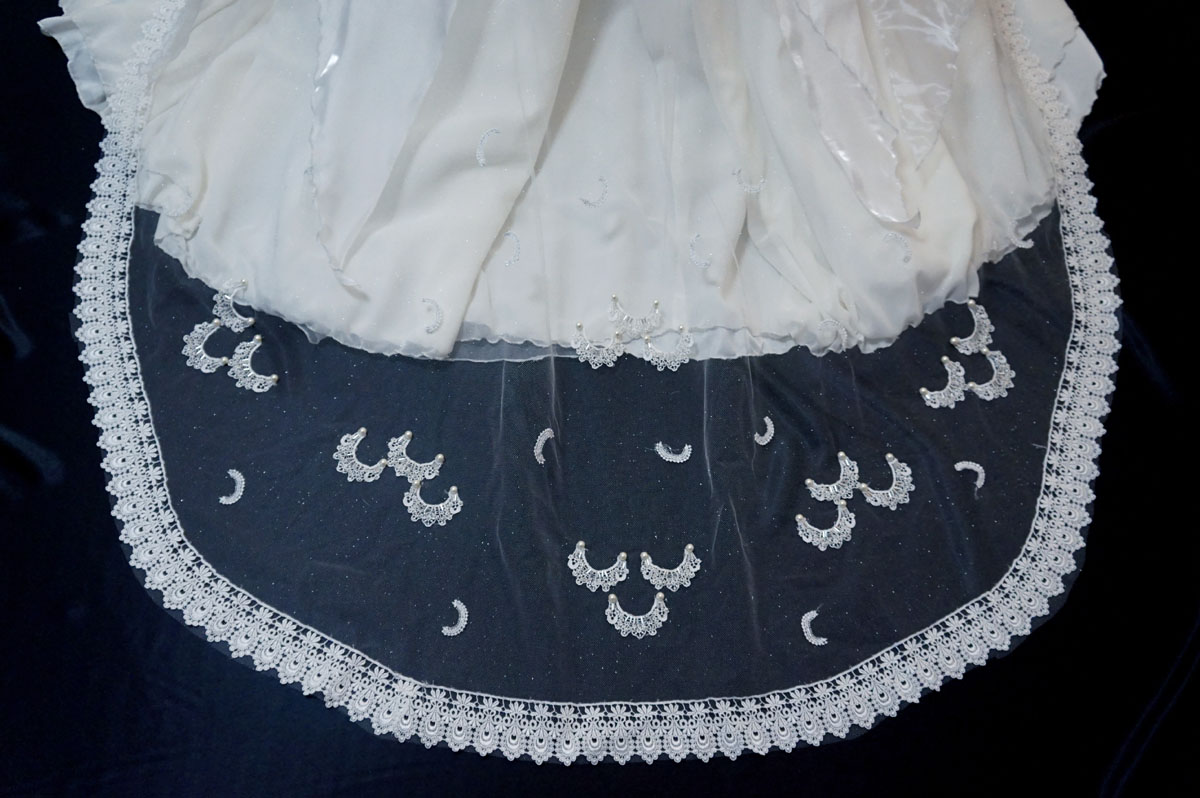 ラメでキラキラのチュールにもうひと工夫、月のレースを縫い付けました