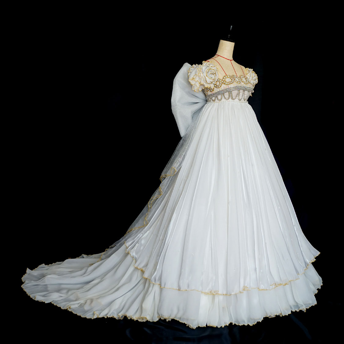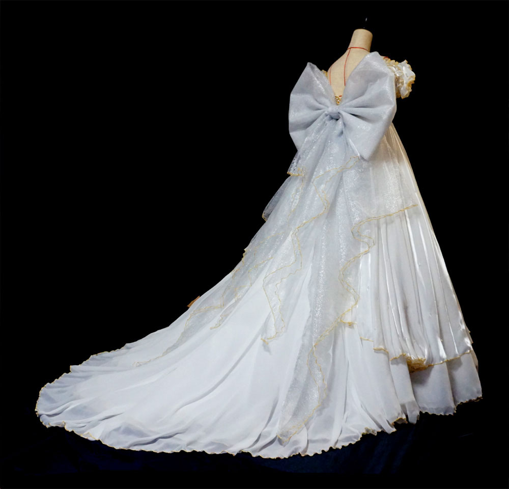 後ろの長い裾部分にも専用のペチコートを足して膨らみを増量しています