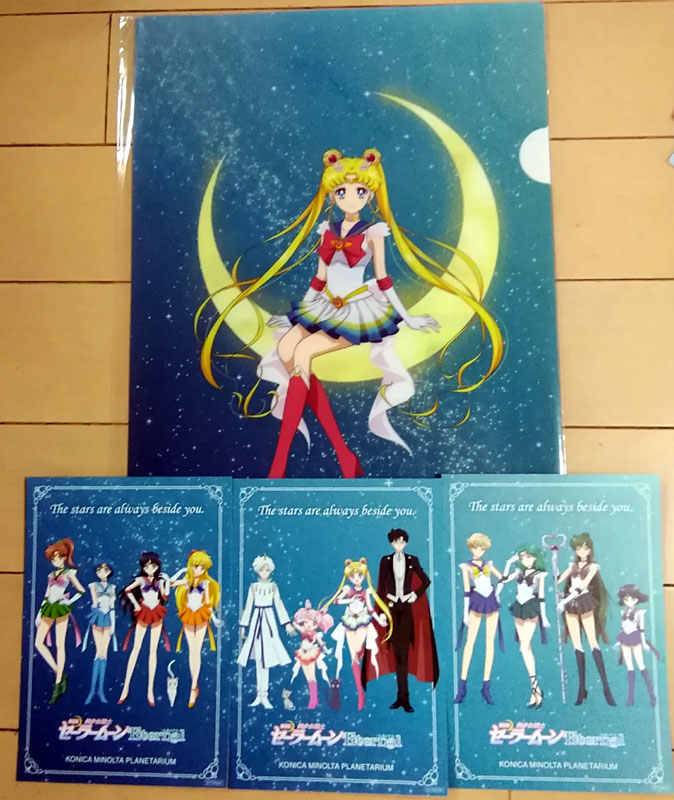 映画館編です お誘いを受けて前編の試写会に行ってきた時のプレスシート 10戦士のフライヤーが豪華 クリアファイルも羽柄でとても凝ってる すごいボリュームです 一部劇場で買えるドリンクホルダー マジ一部ですぐになくなったレアアイテムです 偶然発売日に上京していて買えました やたー バルト9の入口 セラエタ! バルト9は他にも セラエタ上映階のおトイレがセラムン仕様で中々に凝ってました 手洗いしないと月にかわっておしおきよ!とか 私たちは何度だって手洗いする とか 口上のアレンジがとてもナイスです こちらは名古屋 楽しみにしている二作が並んでいてとても嬉しい 最近夏目友人帳も好き はしごして観ました ミッドランド限定の店舗企画もあったり 入場特典はカードダス風カード(右 前編後編各一種 ムービーチケットも前編後編と絵柄が違ったり(左上) あと月色chainonのCD特典(左下)もカードダス風カード 全員集合が欲しかったのでFC限定を買いました ここからは劇場グッズ パンフレット前編後編と収納ファイル ファイルプリンセス戦士柄なのがセンス良すぎてたまらん 他色々 頑張って少なめに抑えました やはりプリンセス柄のマスクホルダーのセンスが素晴らしい しかし一番のハイセンスはこれでしょう 今回ピカイチのベストグッズ賞! まじか、遂に出してくれたのアイマスク仮面様 セラクリ以降の原作仮面様は当時アニメのようにシャレをきかせていじると 怒られそうな空気感を感じていたので まさかこんな素晴らしいアイテムが出るなんて微塵も思っていませんでした こういうの、こういうの欲しかったのありがとう公式様 でもこれ、実は裏面設定で表はアイテム柄だという所に 少しの配慮を感じてくすりと笑いました ……いやあれは配慮なんだろうか 敢えて仮面様の瞳を間近に接近させるというマニアックな解釈も あったのかもしれない どっちの解釈もあなた次第 どっちを裏にするかもあなた次第 つぎにつづけ