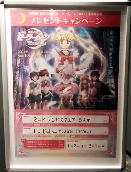 そんな訳で公開中色んな場所であらゆるコラボ企画があったので 振り返ってみようと思います 施設コラボ編、映画館編、コラボ商品編と続きます コニカミノルタプラネタリウム編 いつか来ると思ってたプラネタリウムコラボです 場所は左から池袋、有楽町、ソラマチ フォトスポットと戦士の説明パネル 秘密のワードを集めて貰えるポストカードと物販はクリアファイル 有楽町限定でフードメニュー …………だけなんですよ えっプラネタリウム上映のコラボはないのΣ 勿体無い! 何が驚くって、ムーンは書き下ろし使ってるんですよ なのに物販はクリアファイルのみでポストカードは配布です 版権料の元とれる?公式側からお願いしたコラボだったのだろうか そんな邪推をついしてしまうなんて私も大人になったもんだすったもんだ 有楽町のパネル展示 後編の時は三石さんの解説もあったそう ソラマチはスカイツリーのお膝元なのでスカイツリー飾ってあって セラムン的には違和感あってわらいました 有楽町とソラマチはフォトスポットもあります 丁度同行していたデマうさで夜空を眺めるロマンチックな夜 ……の現実 有楽町のフード スパムンのパフェ個人的にとても美味しかった 翌日のトイレは凄まじかったけど 仮面様のドリンクは味は美味しそうだったけど 食べ進めていくとどんどんドブ色になってきて 途中のビジュアルが中々凄まじかったです もう終わったから出してもいいかな それぞれの場所で秘密のワードを見つけて言うとポストカードが貰えます 上から池袋、有楽町、ソラマチ 二つまでは見つかるけど最後の一個が中々分からない事が多かった 物販のクリアファイルと配布ポストカード 普段のグッズ展開を思うと珍しい大人しさ 続いて食玩ジャパン クーナッツが販売されるタイミングで当時の食玩の展示がされてました 個人の持ち物らしいです スモールワルードトーキョーにサーカスがやってきた! という訳で行ってきました 一の橋公園の近くに小さいサーカスと遊園地 遊園地にはまもうさ親子がいた あとすごく細かったのが、ミラーハウスの屋根で フォボスとディモスがとまってる! レイちゃんはミラーハウスの中に行ったのかな サーカスの中にはジルコニアおばばがいました ホント凝ってる 見に行ったタイミングで丁度サーカスを作ったおじさんが作業していて 少し制作秘話を聞かせて頂きました 得したやった 横浜VR 物販のビーズアクキー可愛すぎる これ!これが一番すごいコラボでした個人的に! だがしかし遠い、東京からついでに行く距離じゃない コロナの関係で20時には閉まってしまうので中々タイミングが難しく 一回しか行けなかったのがもったいなかったです もうホント、勿体無いの一言 たくさんの人に見て欲しかった 軽くユニバです、10分限定のユニバです 3Dなのにちゃんとアニメのうさちびが動いているし迫力あるし臨場感あるし え、これ展望台上がったら無料なのまじか 何がすごいって、モデリングアーティストの方の動きがとても綺麗でぶったまげる ムーンゴージャスメディテイションのバレエのようなしなやかな動きに魅せられました メーディテイション!の所で右手を突き出す瞬間の足の重心移動がたまらなくて おうちで何度も練習して即コスプレに反映しました Photo by dy シンリさん 真面目にキリっと技発動をするオトナ スっと前に出す足が綺麗なんですってば 大体メディテイションを後ろから見れるってどういうことだ 初めての体験だ すっごい守られてたワタシ すっごいショーゲキ! あとはお仕置きよポーズを全身で見れる機会って実は中々なかったかもしれないなあと アニメだと上半身だけ切り取られているので全身がどう動いているかまでは分からない 今回手先だけではなく一連の動きを全身で見れて感動でした 等身大のパネルもありました ペガサスの迫力がすごかった あと面白かったのが、お仕置きよのムーンの指がちょっと違った 左の親指が立ってなかったです セラエタでもちゃんと親指立ってたのでこれはVRのパネル独特の指先ですね 甘いドリンクのコラボも ペガサスとちびムーン 可愛くて美味しい 次回に続く