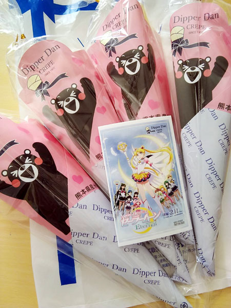 食べ物コラボを集めました ファーストキッチン ポテトのパッケージがセラムン仕様 プラス料金でフェルトコースター(前半)ミラー(後半)がつきます 各ランダム全6種ずつ フェルトコースターは全種ゲット 守護星マークでデザインが凝ってる 使いやすそう だけど人気は圧倒的にミラーでした 同じ値段だしなあ ディッパーダン!ディッパーダン! ディッパーディッパーディッパーダン!くれーぷ!くれーぷ! くれーぷ食べようディッパーダン! でお馴染みのクレープ屋さんにて700円分買うと貰えるシール 名古屋だとめっちゃお馴染みなので店舗多いし助かったのですが 意外に都内は少なかったよう これもいつか来ると思った! ねこねこの食パン 絶対ルナでやると思ってました チーズケーキまであるとは 紙袋とパッケージがとにかく可愛いんです これは買うしかない 食パンは切り分けて黄色いチョコペン(付属)で月のマークを描く 絵心が試されるターン どうしよう正解が一個もない…… 味はココアで塩気もあり、すごく美味しかった 焼いて食べたら普通の食パンと変わらなくなってしまったので 焼かずにふわふわのまま食べるほうが絶対良い チーズケーキは柔らかくて軽い 何個でも食べられそうなやばいやつ 続いてローソン ローソンは前編後編と色々コラボ商品が出て楽しかった 乙女のカフェラテ 第一弾が内部でカフェモカ 第二弾が外部でほんのりビターカフェモカ ビターな方が美味しい個人的嗜好 後編に合わせて何か色々出てびっくらした! ゼリー付きのマグカップからコグミ、プリンとルナアルの和菓子 マグカップゼリーは入荷店舗が少なくて探すの大変でした プリンしっかりしていて美味しい! だがしかし、ムーンが探しても探しても見つからない…… 他の戦士はずっと残ってるのにムーンだけ一瞬でなくなる毎度の事案 一週間くらいの期間で、三日目にしてやっと見つけられました 上はシールだけど剥がすと痛むからそのまま保管するしかない ルナアルの和菓子はメイプル味もあり 和菓子苦手な私でも食べられました うんまい 表情がウインクバージョンとおめめパッチリバージョン ランダムで入ってる感じ ローソン繋がり 先行販売された劇場のグッズ これがもう、大変でしたよね 対象店舗がとにかく少ないし、劇場でも限定過ぎて買えるハズがない 特にチャームは先行で各店舗二個ずつしか入らなかったようで 先着二名で終わりとか何だそれレアすぎるだろ ブローチのチャームがムーンとちびムーンと激似過ぎて 「違いがわからない……」と店長のオジサマが凝視していたのが面白かったです 特に蓋が空いたやつの方なんて説明しても最後まで首を傾げていました わはは 次回 まだまだセラエタコラボがつづく