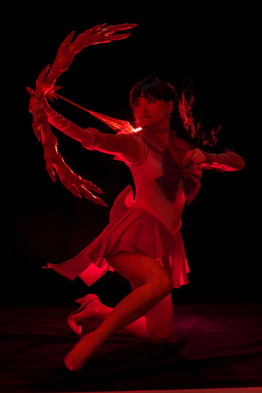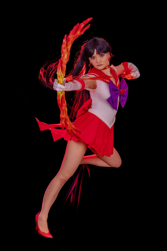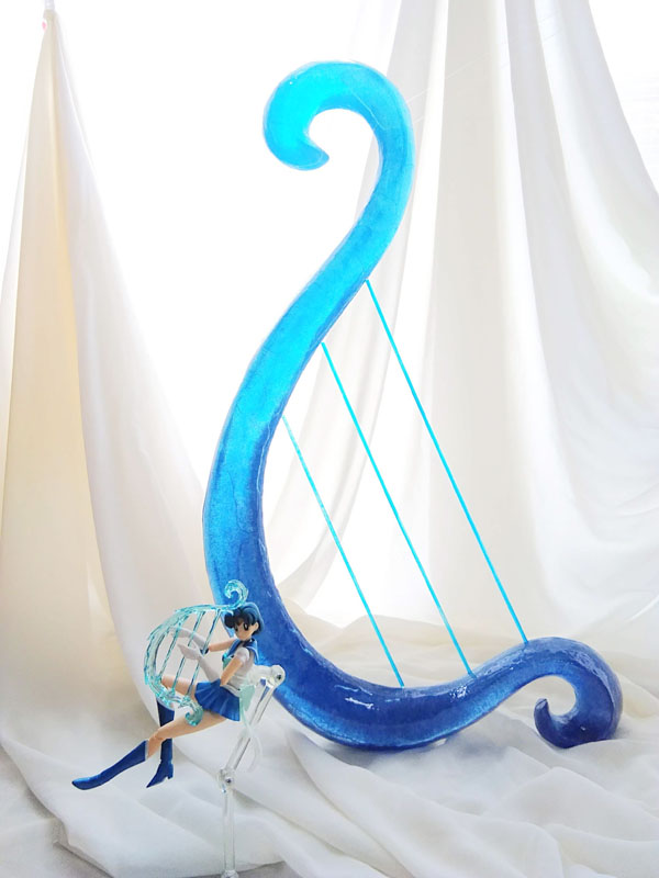カッコイイ武器を作ってもらって格好良く撮影していただきました! Photo by 海老式さん 撮影補助 ○林さん 造形 ヒツジグサ うさこ マーキュリー・アクア・ラプソディ 海老式さんのご自宅で黒背景を敷いていただいたのですが すんごく上質な漆黒の黒で何かもうすごい、これぞ闇!という感じで スーパーの技バンク具合が半端なかったです 襟のひらみは透明洗濯バサミの技が光る! ストロボの光がめちゃくちゃ綺麗に入ってお気にいりの一枚 どの写真もハープのエッジが際立って見える めちゃくちゃ綺麗に撮っていただきありがたい限りです! ハープにエッジをいれるか滑らかにするか悩んだのですが エッジ入れて大正解でした 見よ、この絵にしか見えない立体物を…… レジンの光沢が最高です 続いてマーズ・フレイム・スナイパー 弓が肉眼で見ても二次元か!と思うほどの仕上がりで 写真になっても二次元感がすごい 赤い光を入れて輪郭をキリっと出していただきました マーズはとにかくポーズが鬼畜で楽しい 派手なポーズ典型的タイプの戦士ですが特にこの技に関しては 中腰で体を浮かせたままのポーズ固定にプラスとにかく背筋を反るという セーラー戦士の中でもかなりラインが凝った必殺技であります 上半身と下半身が同じ方向を向かないどころか真逆を向いていて セーラー戦士の腰の捻りだけ取ってみても最高潮のポーズです だからホント、格好良く見せるの大変なんですよコレ すんごくプルプルしながら頑張ってポーズしてると ああ、今セーラー戦士に変身しているなあと感動します こちらはストロボが反応しなかった時の一枚ですが こっちも雰囲気があってめちゃくちゃカッコイイ! 次回 オーロラリフレクターを使った一枚をご紹介