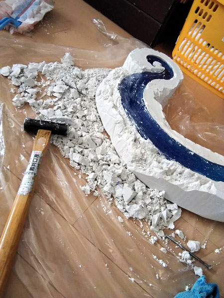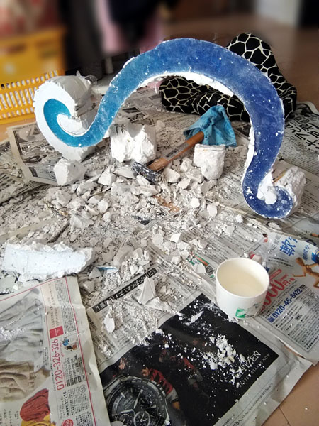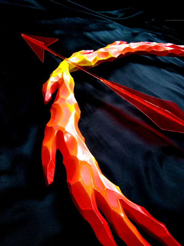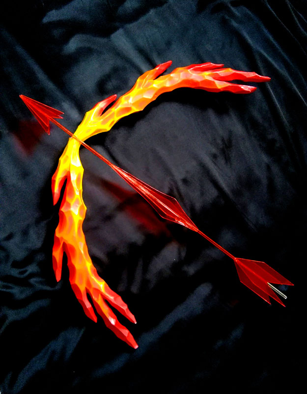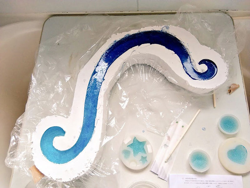 十着全部一日で撮って欲しい などという無謀な挑戦に手を挙げてくださったカメラマンさんがいたので 先日早着替えをやってきました 流石に一日では無理だったので二日間設けて華麗に早着替え 二日で十着本当にやってきたよこいつ 全身の関節を派手に動かして、翌日から体バッキバキ筋肉痛で死ぬかと思いました 超楽しかったうえーい そんな訳でノーマルとスーパーの差を付けるにはどうしようかと考え これはもう、スーパーでしか出来ない技をするべきでしょうと ずっと興味がありつつも中々手がけていなかった武器を 我が家の造形担当に作ってもらいました マーキュリー・アクア・ラプソディ! 水の透明感を出したくてオールレジンで作りました でけえ……よく作ったな 過去最高の大きさです しかも立体成型です 工程を語ると中々の鬼畜さです 原型はスタイロを削って作ったのですが、レジンにしようにも シリコンで形を取るととんでもない額になりそう…… そんな訳で今回は石膏で型どりしてみました 驚愕の重さ、そして固さよ さあさあここからがやばい 石膏型からのレジン発掘作業 カナヅチと釘を持っていざ開始 か、、、硬すぎて歯が立たない それでも少しずつカンコン削って削って削り進める雑用係のワタシ ……発掘作業なんて家の中でやってはいけない そんな当然の事実を気にせず軽率に始めてしまったアホ 前と後ろ合わせて二回、正味6時間程かけてなんとか掘り出し そこからグラインダーで磨く作業がまた3.4時間 カリ石鹸を塗っていたとは言え、それでも石膏を 完全に取り除いて磨くのはなかなか大変でした 最後はトップコートの厚塗りでつるっつる 前後を貼り合わせる時に気泡が入ってしまいましたが これがまた水っぽさが強調され結果オーライという事に ツイッターで紹介したら「触手っぽい」と言われましたが うん分かるその通りなん 第一印象触手ですねと友人にも突っ込まれてたので確信して笑いました お次はマーズ・フレイム・スナイパーの弓と矢 こちらは炎の躍動感を表現する為に弓はスタイロを削り出し そして初体験のエアブラシ塗装 何年も前に買ってはいたけど中々始められなかったエアブラシですが 炎の燃える色味はスプレーでは無理だとようやく挑戦するはこびに やってみればなんだこれ超かっこいい仕上がりに そして塗装代が安い……もっと早く始めても良かったよね 矢はアクリルを貼り合わせて鋭さを出しています ポイントは持ち手を透明にして残しておくこと 矢の部分を持つというよりはエナジーを炎の形に変換して放つ技なので なるべく握っているように見えないよう工夫しました こちらで超カッコイイ撮影をしてきたのでレポをお楽しみにでございます セーラー戦士もっと出したい 足出したい足下さい(露出狂
