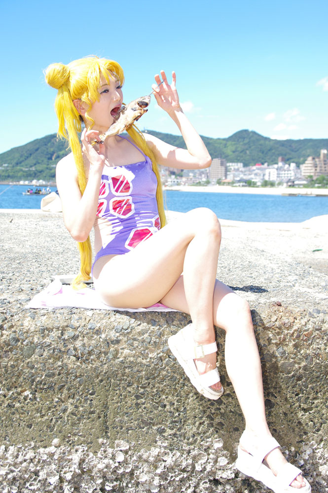 月野うさぎ水着(67話) 大きな花柄が目立つ一着 どうしようか悩んだけど花柄は全部縫いました 真横から後ろにかけても柄が入ってるからパーツが多くて死ぬかと思った 光沢のある艶々なお花だよ!ギラギラ大好き! ワンピースかと思いきや後ろはセパレートぽいデザイン 露出対策とシルエットを出す為に肌色のパワーネットを使用しました フィギュアスケートみたいな感じ そういえばいつかフィギュアの衣装を作ってみたい どこかでご縁があればいいにゃー Photo by FRDさん なんてセクシーなデザインの水着や 中学二年生が着ていいんか中村さんよ(67話作監) Rの小道具は魚の丸焼き 何気に手が込んでいる小道具 本物の魚を焼いて持参したんだけど しっぽが焼け落ちてなくならないように火加減をめっちゃ調整し 塩加減まで注視してくれました、うちの旦那様が 適当に焼いて持っていこうと思ったら「小道具ならちゃんと形を整えないと!」 とやたらにこだわりだした裏話 実は一番重くて荷物になったのこいつだよ…… 崩れないよう皿にラップでくるぐる固定して現地まで そんなこだわりの魚です 見て、よく見てね! 小道具バッチリ!よくできた! 次回予告 SSの水着回