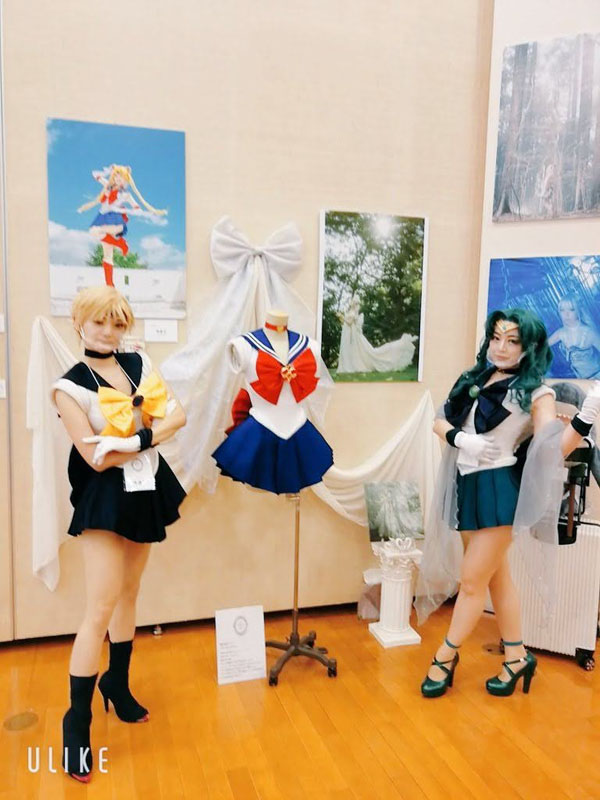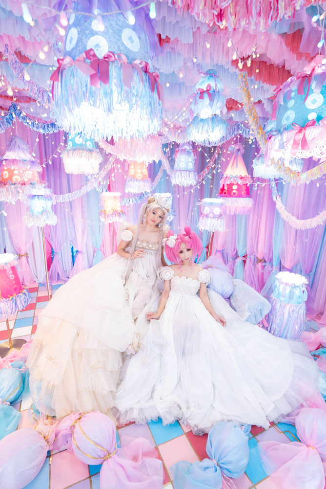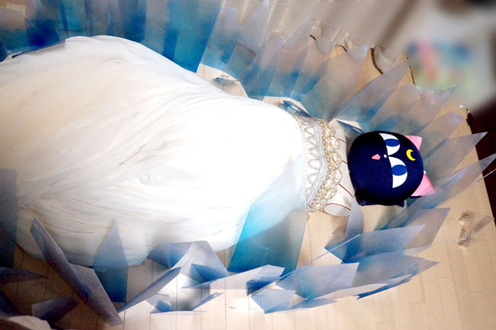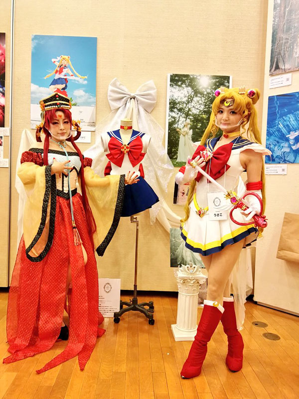 出展者の皆様、スタッフの方々、身に来てくださった皆様お疲れ様でした そしてありがとうございました 大変な情勢の中でしたが感染症対策にも取り組み、素晴らしい展覧会だったなと思います そんなこんなでレガシーレポ れつごー! 三日間開催の前日に設営で恐る恐るやってくるビギナー たった一人自分の壁の前に呆然と立ち尽くし、暫し硬直 何をどうしたら良いのだらう パネルの設置の仕方すら分からねえ ていうか一人でこんな大きいパネルどう設置すれば…… とりあえず荷を解いてお手伝いに来てくださるさいこさんを待つことに さいこさんの素晴らしいセンスで壁にセレニティのリボンを飾ったりして 何とか設営完了しました パネルと合わせて衣装の展示 これが一度やってみたかった 今回パネルも初めて作ったのですが サイズをどうしようかめちゃくちゃ悩んだビギナー A1かA0で悩んで大きい方を頼み うちに届いた時にはあまりの大きさに後悔したビギナー でも会場に飾ったらぴったりだったのでこれで良かった結果オーライ パネルは今後、東京駅のKITTEでも展示されるようです しかしまあトルソーを二体借りて三日間も展示場所を提供頂き これで出展料数万とか安すぎる……ありがたい限りです ムーンとセレニティを飾りたかったのですが 壁の前に二体は少し手狭ということで 後ろに場所を頂きドレスはこちらに展示 柔軟に対応頂いてしまいました 裾が広げられてありがたい限りです二回目 過去の己を見つめ直すアングル 立ち位置もバッチリすぎる ありがたい三回目 実は今回目玉だったのがこのタイル印刷 小さくて中々目立たせられなかったのが勿体無いくらいの一品 釉薬で色を吹き付け焼いてあるので未来永劫色が褪せないんですよマジか まだ日本ではプリンターが数台しかないらしく、珍しい技術のようです (西洋ではメジャーらしい) 多治見の企業様に作っていただいたのですが、こういう面白いものは 今後是非活用されて欲しいなあとしみじみ 弱点もありまして、色の幅がすごく狭いので ビビットなカラーはほとんど再現できないかなと思います 色素の薄い原作セレニティが今回めちゃくちゃピッタリはまった感じです まあまあお値段は張るので本当に作ろうか一瞬悩んだのですが 家族が「墓石に埋め込んであげる」と肩を押してくれて 今回制作に至りましたそんな裏話 何故か私の死後の話が着々と進んでいく…… 今回とても興味深いご相談をいただきました 死装束のセレニティドレスをいつか作って欲しい しかもそんなお話が何と二件もΣ 私も日々、自分の最期のドレスをいつから作ろうか考えてはいるのですが じわじわ、じわじわと世間でも興味が広がってきたような気配を感じました セレニティでウェディングの次は人生最後のドレス製作 私の人生の目標がまた一つ増えた 今回三日間の開催の間 さいこわかちこさんにお手伝い&ゲストコスプレイヤーをお願いしました 色々持って行って着て貰ったよ!わーいわーい! 一日目はウラネプ (感染症対策で透明マスクを着用しています) 最近はムーンのイメージが強かったからか、結構驚かれました 二日目はダークサイドの二人 さいこさんのお衣装はアリスガワアリスさんのお手製です 二人共本領発揮のド迫力でした 今回に合わせてブラックレディの衣装も作り直し こちらで三代目 ブラックレディは人生初の自作衣装だったのもあり そこから自分の技術が上がってきた頃合いを見て作り直すようにしてきたので 実は結構思い入れのあるキャラだったりします しかしまあ、どうしてこんなに馴染むのかと思うほどの悪女顔 三年ぶりくらいにブラックレディちゃんやったけど やはり自分の中で一番しっくりくるし顔作らなくても充分迫力あるし なんでこんなに似合うのかな不思議だなとしみじみ サターンは年取って輪郭が変わったから半ば引退になってるけど ブラックレディちゃんは若かりし自分と何も変わらず むしろじわじわ良くなっていきそうな余白を今ここから感じている 謎過ぎる プリンセスなセレニティの可憐さは何百回やってもぎこちないのに なんだこの三年ぶりにぱっと出した黒女ちゃんの異様なフィット感は セレニティちゃんあんなに努力してるのに報われねえ ちくしょうめ 三日目はスーパーセーラームーンと時満ちて光臨火球様 さいこさんが優雅なのですごく高貴な姫様で眼福でした (でも何故か敵キャラですかと聞かれたらしい) 入口でお出迎えのあまびえちゃん ちゃんと被れるんですよすっげえ! 初めての展覧会出展となり、かなりびくびくしながら出陣しましたが たくさんの刺激を貰う事が出来ました 普段セラムンの世界しか知らないので、見るもの全てが目新しい斬新な世界だった 色んなジャンルのすんごい作品を一気に拝見して情報量に脳が追い付かないくらい 充実した三日間でした 一言で言うと同じベクトル向いたキチガイばかりが集結していて 私だけじゃないと言う妙な安心感を貰いました たくさ