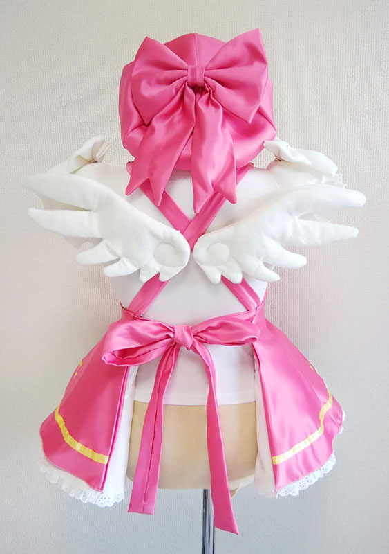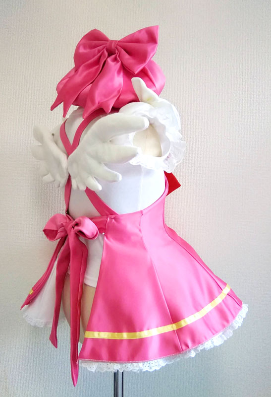 珍しくセラムン以外の制作です 何とカードキャプターさくらである 子ども用エプロン(1-3才くらいのイメージで) お友達にご縁を頂きまして、可愛いお子様のエプロンを作らせていただきました 身内に女の子がいればこういうことやりたかった!夢叶う チーム知世の衣装担当です(キリッ 知世ちゃんは制作から撮影まで全部こなしていてすごいと言う話 チーム知世撮影担当の友人にスカウトされて衣装担当デビューしました ヤッタネ まだ小さい女の子なので服というよりは着せやすいエプロンでと言うことに エプロン案は当方もちびうさ制服全種再現で作ったことがありますが 服一着作るより手軽で簡単に変身出来るからとても良いアイデア ブラウスは市販のシャツを買ってきて袖にレースを付けました さくら衣装は何と言ってもスカートのボリュームが魅力 小さい子用でも容赦なく布量は使う 中のペチコートだけで5mも使う鬼畜っぷり こんなにボリュームがあってもちゃんとエプロンの一部なんですよ そろそろエプロンといっても良いのか、雲行きが怪しくなってくる 後ろにはちゃんと羽付き フェルトでちょちょいと仕上げる エプロンにしたのにはもう一つ理由があり すぐに大きくなるのを考慮して、出来たらなるべく長く着れるよう 肩の紐で丈を調整できるようにしてあります スカートのサイズ的にも4.5才くらいがオススメ 制作風景など エプロン本体裏表で計12枚の型紙案件 エプロン作る数じゃねえ 帽子を作るにあたり 家族にサイズを指定して直角三角形の型を作ってもらう そこから10分で試作を仕上げたらすごいねーと褒められました イエイ! セラムンばかりの人生なので貴重な機会でした ありがたや