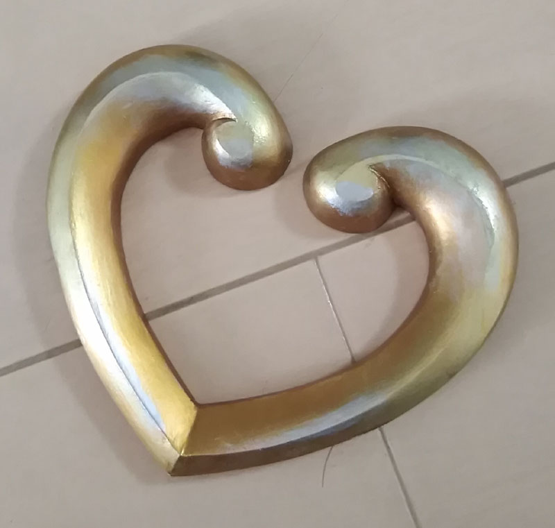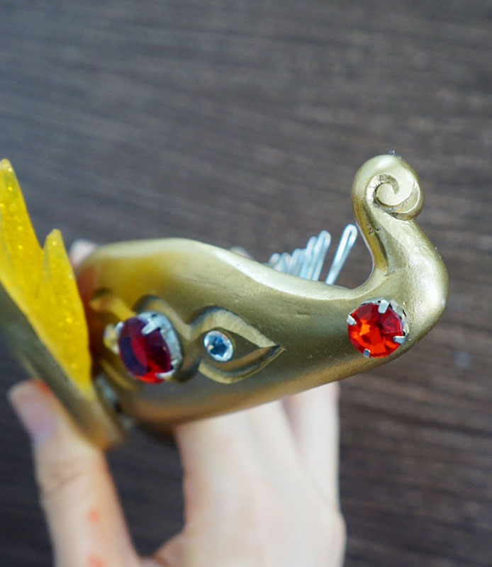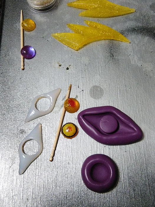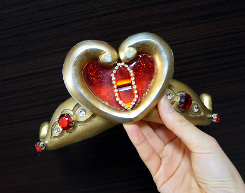 パテで成型して金塗装した上にラメを入れたレジンでコート