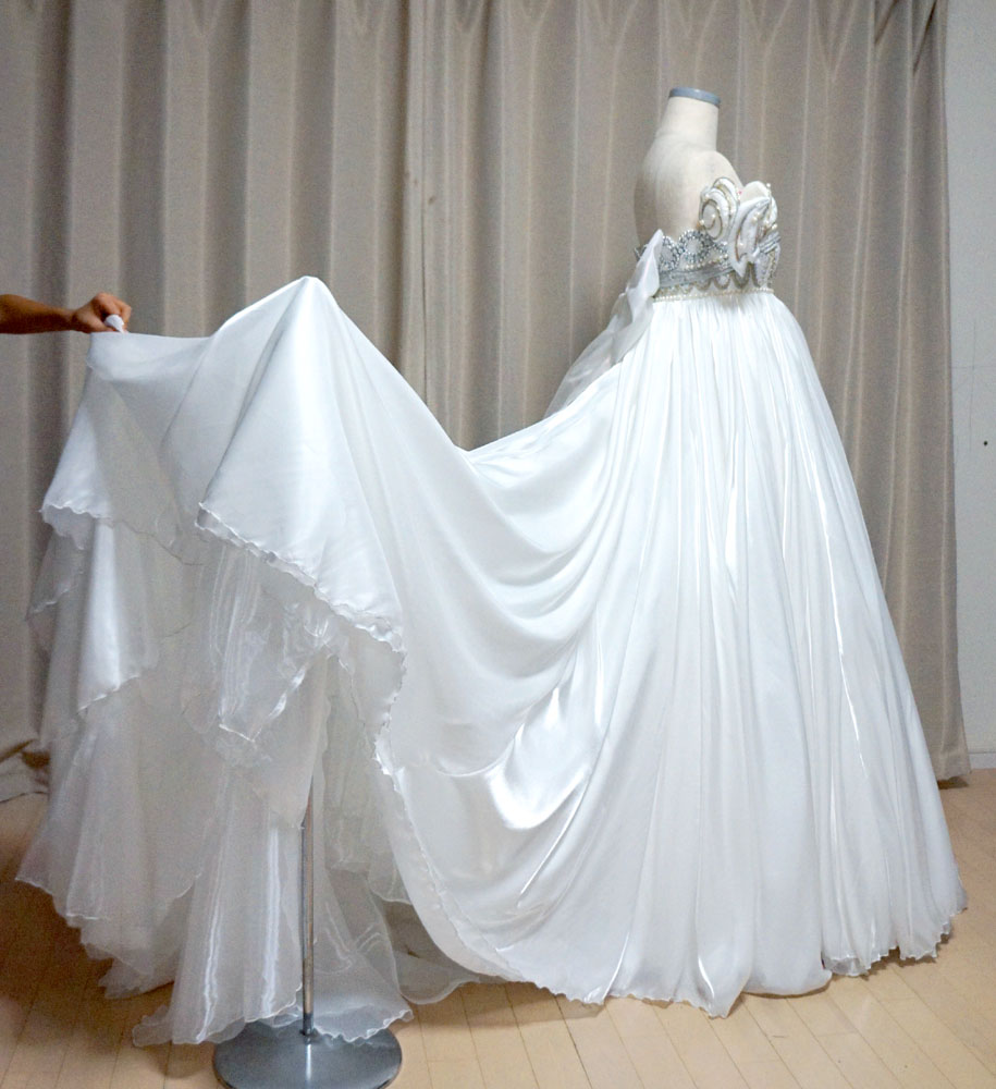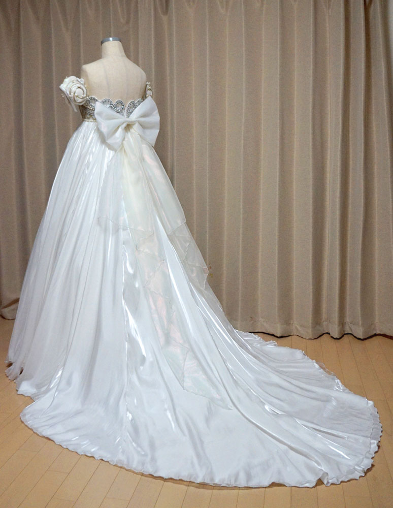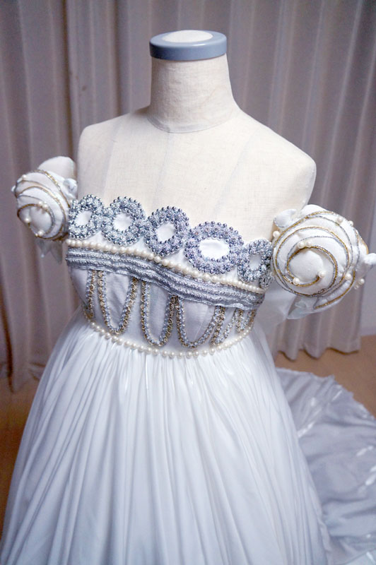 胸元リボンはティアラにも使われるブレードを一つずつ加工