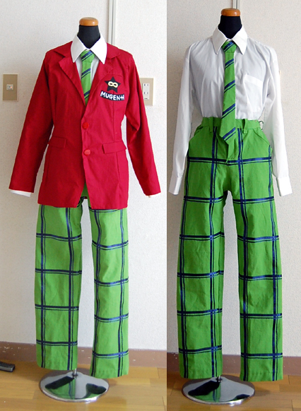 ようやく日の目をみることになりました! 無限学園男子制服 ひとまず完成です。 やってみれば案外楽しいじゃないかとv ネクタイは結び目にラインをだしたくて 飾りネクタイワンタッチに ズボンのラインはまあまあ綺麗に入ったかな でもポケットがものすごく浅くて実用的ではなかったり; あとウエストとヒップの差を上手につめれなくて ウエストがもうぶっかぶかm(_ _)ノ 試作品第一号なので色々な所に改善点があるのですが 次から作るやつには反映できそうです ワッペンはできたらもう少し小さくしたかったけどこれが今の限界です 自分なりにいろんな工夫をして作った一品だけに 完成して着用したときは感激ものでしたv これで無限チェック完全補完計画がまた一歩前進したわけですが 最終目標はチェックプリントなのでこれからも追及し続けていくのですよ 多分あと5.6年で家庭用生地専用のプリンターが開発されるんじゃないかな(笑 卒塔婆用のプリンターが既にあるくらいなんだから それを期待してそれまでは頑張ってリボン縫い付けていくぞー(´▽`)ノ 来週は6月後半にあるセラムン撮影会の衣装を作ろうかなと思います。 僭越ながらワタクシが主催なのですが 全キャラ勢ぞろいのマイナー衣装合わせで メンバーも超豪華と言う 文句の付けようのない撮影会です 何ヶ月も前から打ち合わせしてきたので楽しみでしょがないv 前日はxxxHOLiCとヤッターマンの合わせもあるので こちらもわくわくさんです とりあえず衣装と精一杯向き合おう