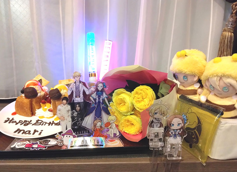いくら推しキャラとは言えど、声優さん自身を追ったりはしなかった当方が 何と蒼井翔太さんのライブに行ってきましたよ(しかも東京二日間 一体どうした何があった私の人生Σ 普通に圧倒される歌唱力と、テノールからソプラノまでいける幅広い声域に突き落とされました どちらかというとアーティストとしてすごく好き(歌っている声は別にジオルドさんみはなかったりする チケットお譲りいただいたいたラボメンさんから ラボメンという言葉も初めて知ったライト層 いやマジでライト層いいな!気楽に楽しめてとてもいいと思います(コラ このおばけなのかうさぎなのかよくわからない、たむたむちゃんも可愛くて良き しょーたくんからのメッセージなどを撮ったりしてキャッキャするライト層 一日目! 立ち見でステージ何も見えなかったけど歌だけでも楽しかった! 隣のラボメンさんのコーレスがプロすぎて感動でした これが生のライブ! 普通に交流して仲良くなりました(笑)えいーぃ!(これも学んだw 夜は一緒に行ったはめふら仲間のたけのさんと推し活続行 仲良くしていただきありがたいしかない 黄色の薔薇はカタリナ 花屋さんにあったので衝動的に買いました 朝までかけてカタぬいちゃんのウェディングドレスを作ってました レースを組み合わせて巻いただけの超お手軽ドレスです ジオカタウェディング!きゃわー! 二日目千秋楽になんとか間に合った! 千秋楽は生憎の雨でしたが、しょーたくんが雨男らしいので仕方ない だがしかし土曜は晴れ女の私が勝ったぜ えいーぃ! がっつりスタンディングのコーレスありなライブは実は初めてで サイリウムの使い方すらままならない当方でしたが、めちゃくちゃ楽しかったです 千秋楽は機材開放席が取れたのですが、何と一階ドセンターの関係者席後ろという良席で しかも関係者はスタンディングもしないで静かに座ったまま見ていたので超よく見えてヤバかった もう一生分の運をきっとここで使い果たしたぞ私 そんな初のライブは、すごいしか言えない語彙力です プロのパフォーマンスって本当素晴らしいと改めて感動しました アップテンポでカッコいい曲調ばかりで 最初から全力疾走で最後まであっという間に走り抜けて言った感じ 喉と体力よく持つなわけわからんすごい そして圧倒される歌唱力と声域、ロングトーン どうして地声普通に低いのにソプラノの声域まで自由自在なのわけわからん ファルセット?裏声?になっても実声と同じ感じで芯が通った声が出せるのわけわからん なんであんなにロングトーンで伸ばして最後上がっていくのわけわからん 何であんなにカッコいいんだコンチクショウわけわからん しょーたの歌はいつも最初から最後までわけわからんしか言えなくなって困る はめふらの曲が目当てではありましたが、他の曲もめちゃくちゃ良くて本当に良かった語彙力 しょーたボイスはどちらかというと高音より低音の声がセクシーで好きなのですが(ジオさんもね 今回カッコよく歌うのがコンセプトだったのか、全体的に男性的な雰囲気の声質で歌われてて最高オブ最高でした バッドエンドははめふらEDだと裏声系の高い声質なのに 今回ライブverは低めのカッコいい歌い方で、これはヤバいサイリウムを振る手が止まって硬直するしかない状態でした Baby stay Goは土曜のアンコールで聴けたし、ギミラミはアンコール最後の一番メインだし 何かもうはめふら三昧で楽しかったらないな! ギミラミのコーレス初めて体感して、こんななのか!と超感動しました みんなすげー!! 他の曲も、ジェラスが特に最高オブ最高で踊りもヤバいカッコ良かったです そんなわけで何かもうね、最初から最後までひたすらカッコいいわけわからんなんですよコンチクショウ こんなの、こんなの沼るしかないイヤー サイリウムいっぱいで幻想的な空間に綺麗な歌声が響いていて、いつかこの世とお別れをする最後の景色もこんなだといいなと思いました 何と言う辞世の句 できたらライブの最中に穏やかに逝きたい(迷惑ヤメロ これはまた次も行きたいですね 沼ですね 怖いですね 最高ですねありがとうございました!