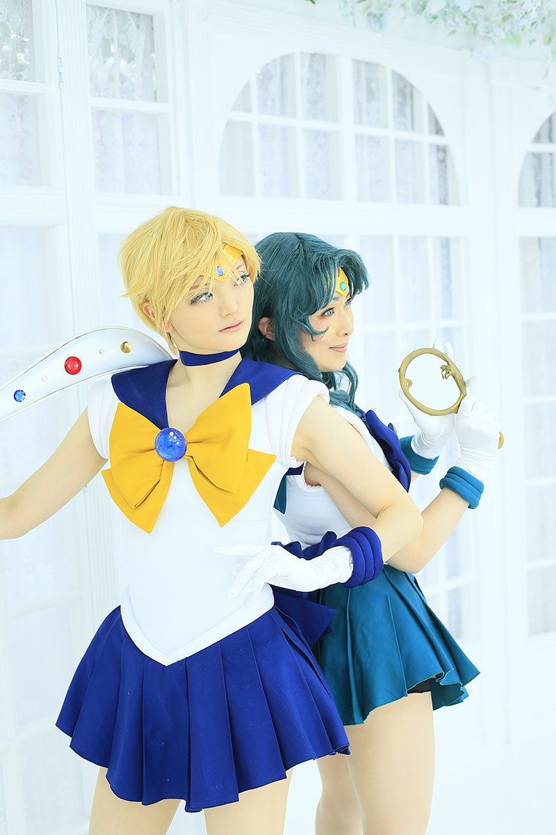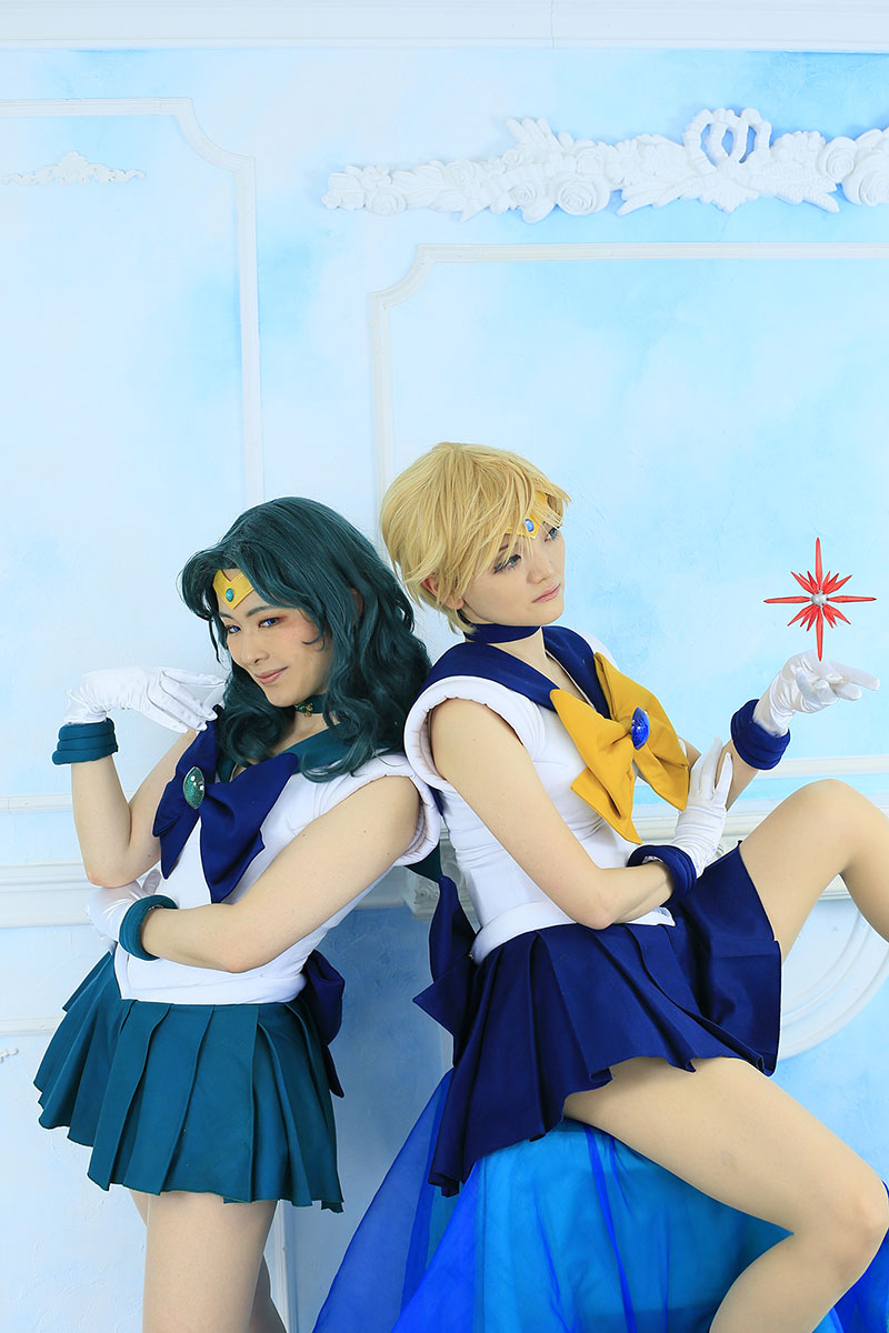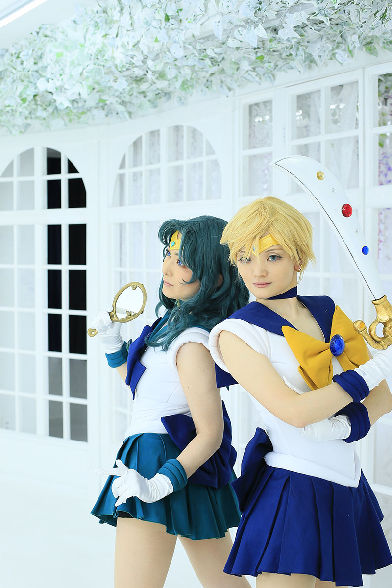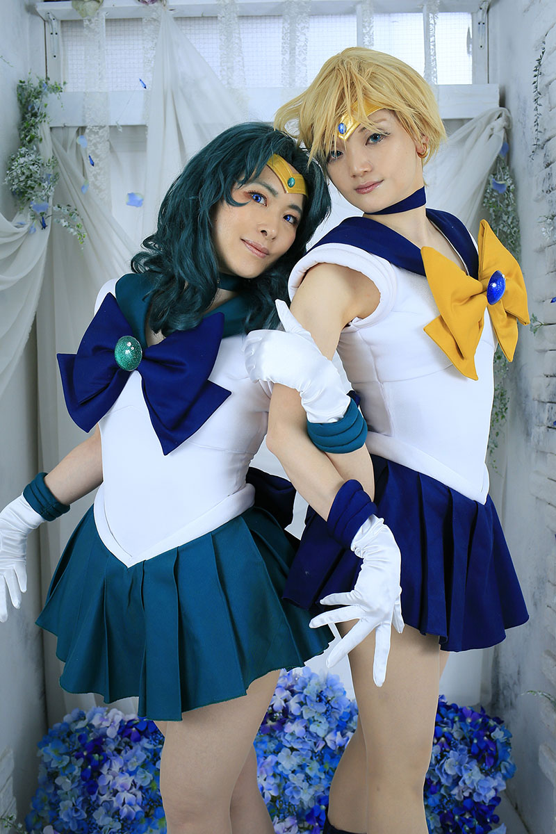 カリスマなんだから仕方がないと思っているうさこですこんばんは 本日のコスレポはウラヌスとネプチューンでお送りします セーラーウラヌス うさこ セーラーネプチューン AKIKOさん 撮影 Aratakaさん 今回AKIKOさんのネプチューンも作らせていただきました ありがたき光栄也 カリスマはお互い背中を預け合える信頼感が個人的にツボなのでそんな方向性で撮ってみたのですが この日視線を合わせた記憶がないくらいそっぽ向いてばかりで ちゃんと仲いいのか君たちと突っ込みたくなりました 視線を合わせなくなって全部伝わってるんだよそういうことですよ力説 あと私のウラヌスが何だかとってもナルシストを気取ってる雰囲気で笑う ちゃんとネプチューン見てる?ねえ? chouette―― フィギュアーツゼロの再現 これが見た感じでお分かりいただけると思うんですが、すげえド鬼畜なポージング 高い椅子の上に半ケツで座り、脚を浮かせて上半身を捻り 腹筋と背筋だけで全身を固定するという技 その辛さを顔に出さずスマートにするのがカリスマよ パッケージの再現など カッコよくて艶っぽいウラネプ とても難しい この振り返りのポージングラインは十八番 奥の腕が見えるようにかなり反ってます そして何気に首と目が痛い 知る人ぞ知る再現 知る人ぞ知る再現Ⅱ