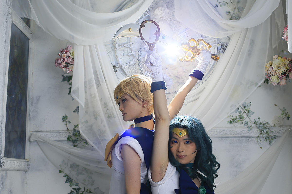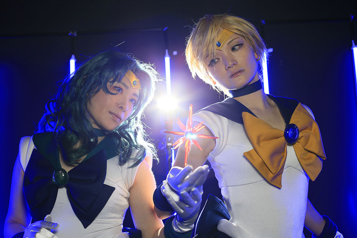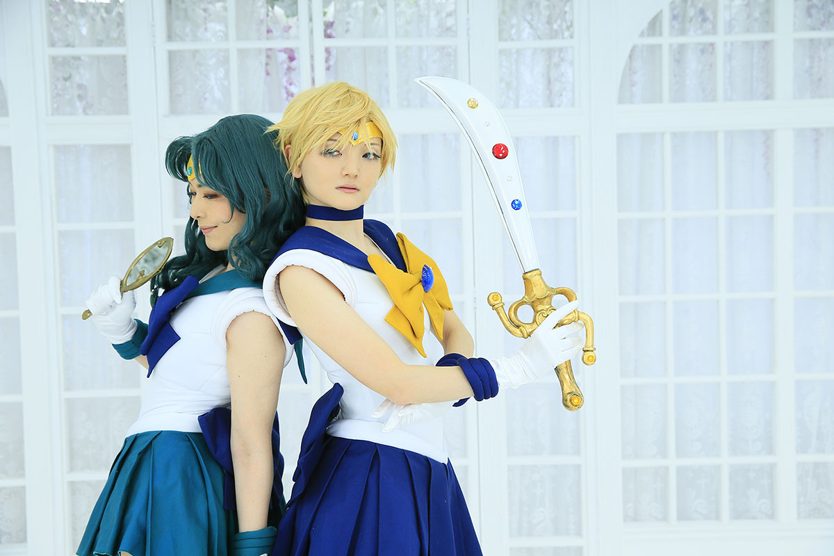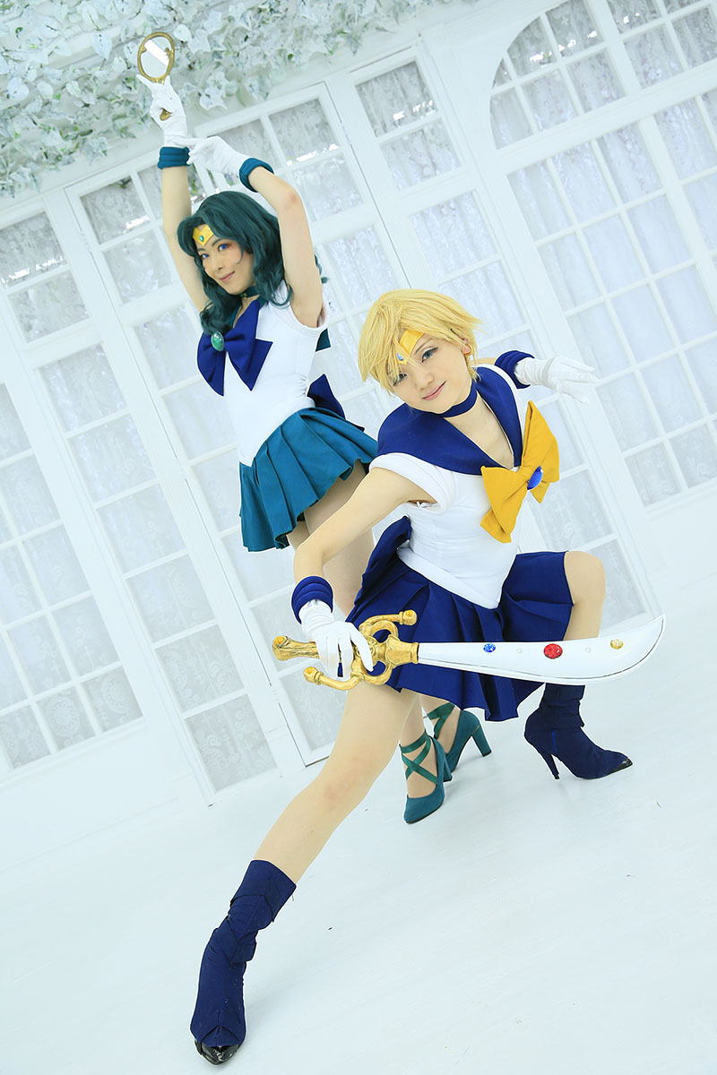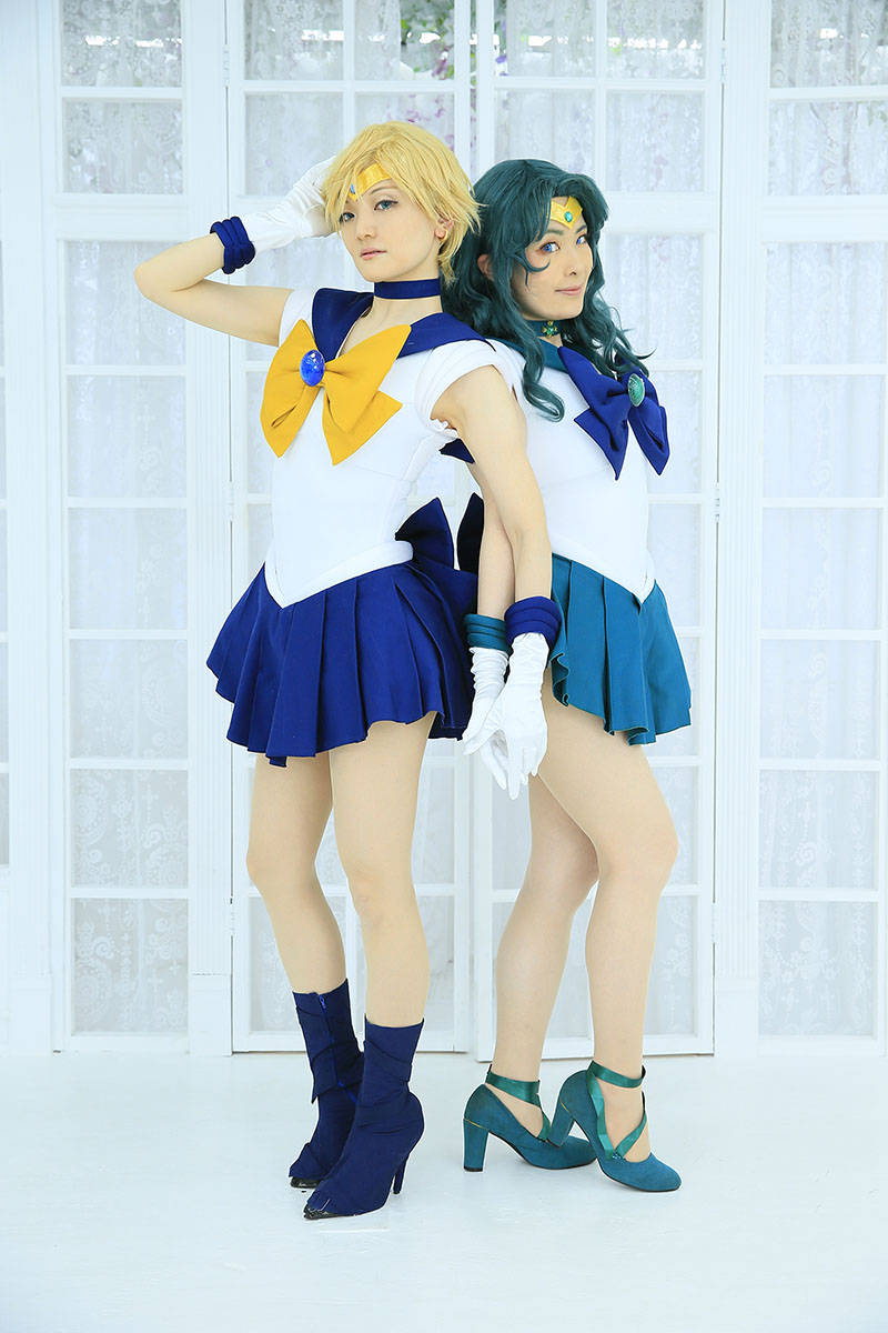 カリスマなんだから仕方がないと思っているうさこですこんばんは 本日のコスレポはウラヌスとネプチューンでお送りします セーラーウラヌス うさこ セーラーネプチューン AKIKOさん 撮影 Aratakaさん 今回AKIKOさんのネプチューンも作らせていただきました ありがたき光栄也 カリスマはお互い背中を預け合える信頼感が個人的にツボなのでそんな方向性で撮ってみたのですが この日視線を合わせた記憶がないくらいそっぽ向いてばかりで ちゃんと仲いいのか君たちと突っ込みたくなりました 視線を合わせなくなって全部伝わってるんだよそういうことですよ力説 あと私のウラヌスが何だかとってもナルシストを気取ってる雰囲気で笑う ちゃんとネプチューン見てる?ねえ? chouette―― フィギュアーツゼロの再現 これが見た感じでお分かりいただけると思うんですが、すげえド鬼畜なポージング 高い椅子の上に半ケツで座り、脚を浮かせて上半身を捻り 腹筋と背筋だけで全身を固定するという技 その辛さを顔に出さずスマートにするのがカリスマよ パッケージの再現など カッコよくて艶っぽいウラネプ とても難しい この振り返りのポージングラインは十八番 奥の腕が見えるようにかなり反ってます そして何気に首と目が痛い 知る人ぞ知る再現 知る人ぞ知る再現Ⅱ
