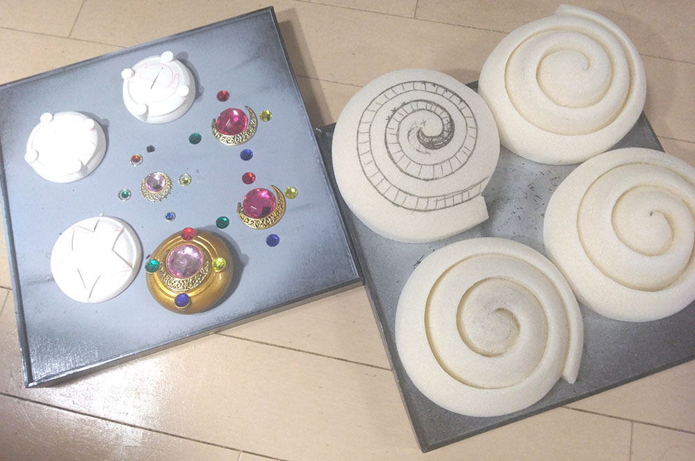そんな訳で二週間開けての更新です 本日は2月に作ったセーラーパラスの衣装のご紹介 セーラーパラス(劇場版) 襟スカート、胸リボンに腰リボン 三色全部違う絶妙な水色です 生地超悩んだよ! シンプルなデザインだと粗が目立つので、より意識して丁寧に作りました 今回今まで作ったエターナル戦士の中でも一番、肩の球体がまあるくできました 20年かけて牛歩の歩みで改良しております しっかり頑丈両肩で96枚の型紙切った! セーラーカルテットとちびムーン、サターンのブローチ&ティアラ 統一したくて我が家の造形担当が制作 絶妙な色味の調整にまあまあ時間かかったけれど パステルカラーでとても可愛くできたなあと思います ラメも入ってキラキラだよ